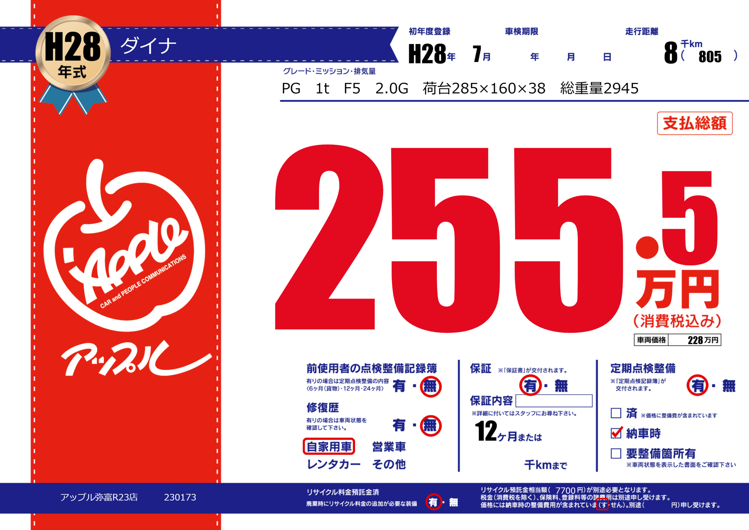 | 車名 | ダイナ | グレード ミッション 排気量 |