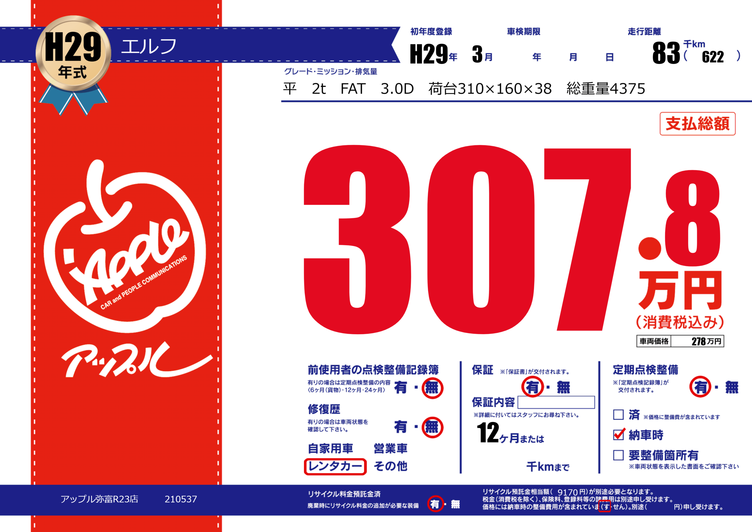 | 車名 | エルフ | グレード ミッション 排気量 |