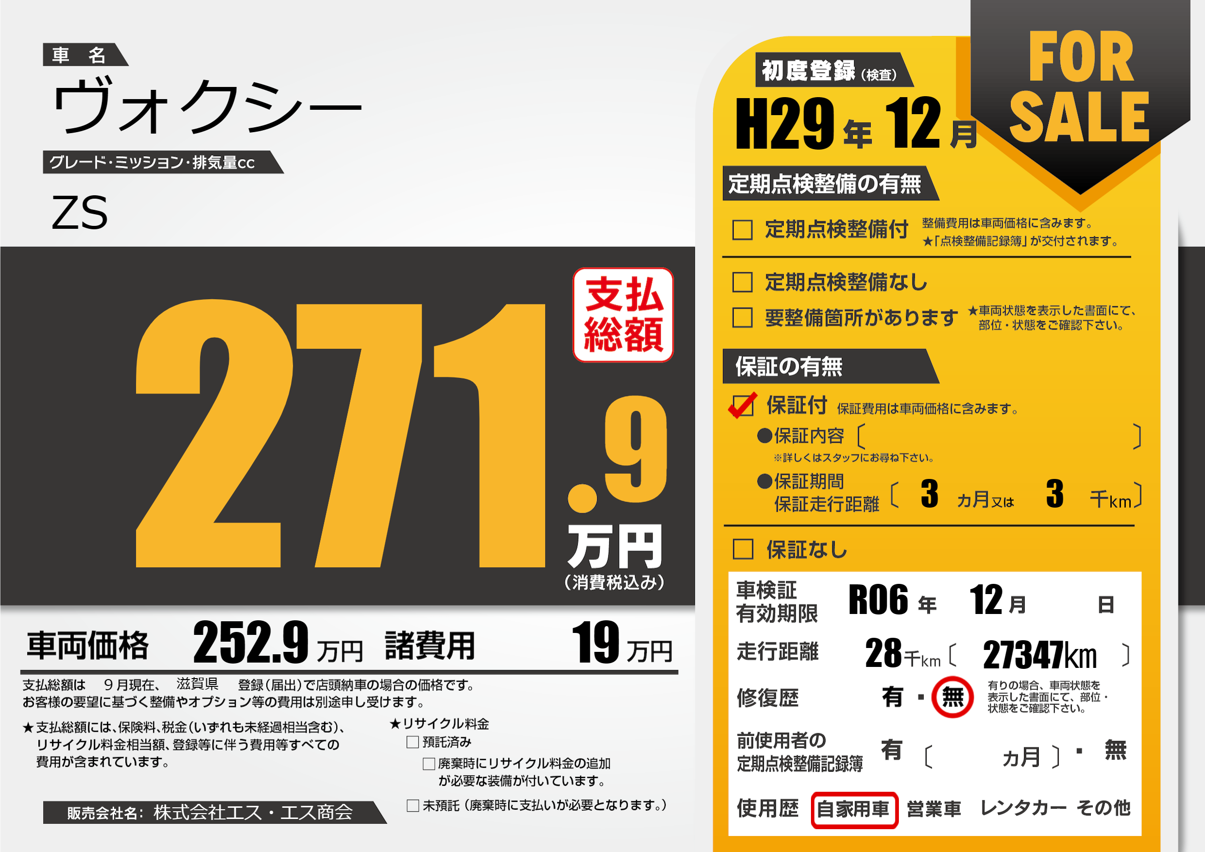 | 走行キロ | 2.8万km | 初年度登録 | H29年12月 |