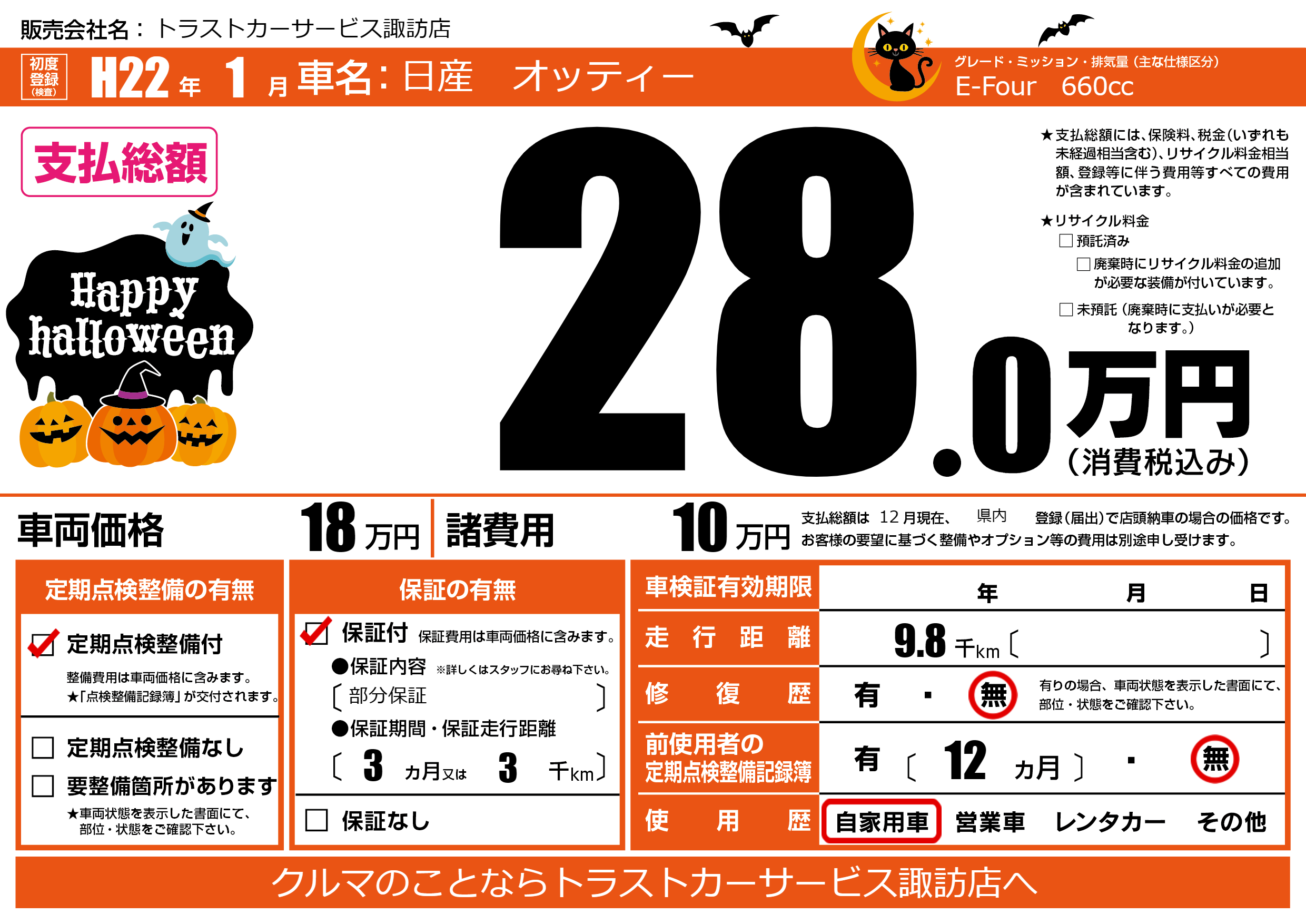 | 車名 | 日産 オッティー | グレード ミッション 排気量 |