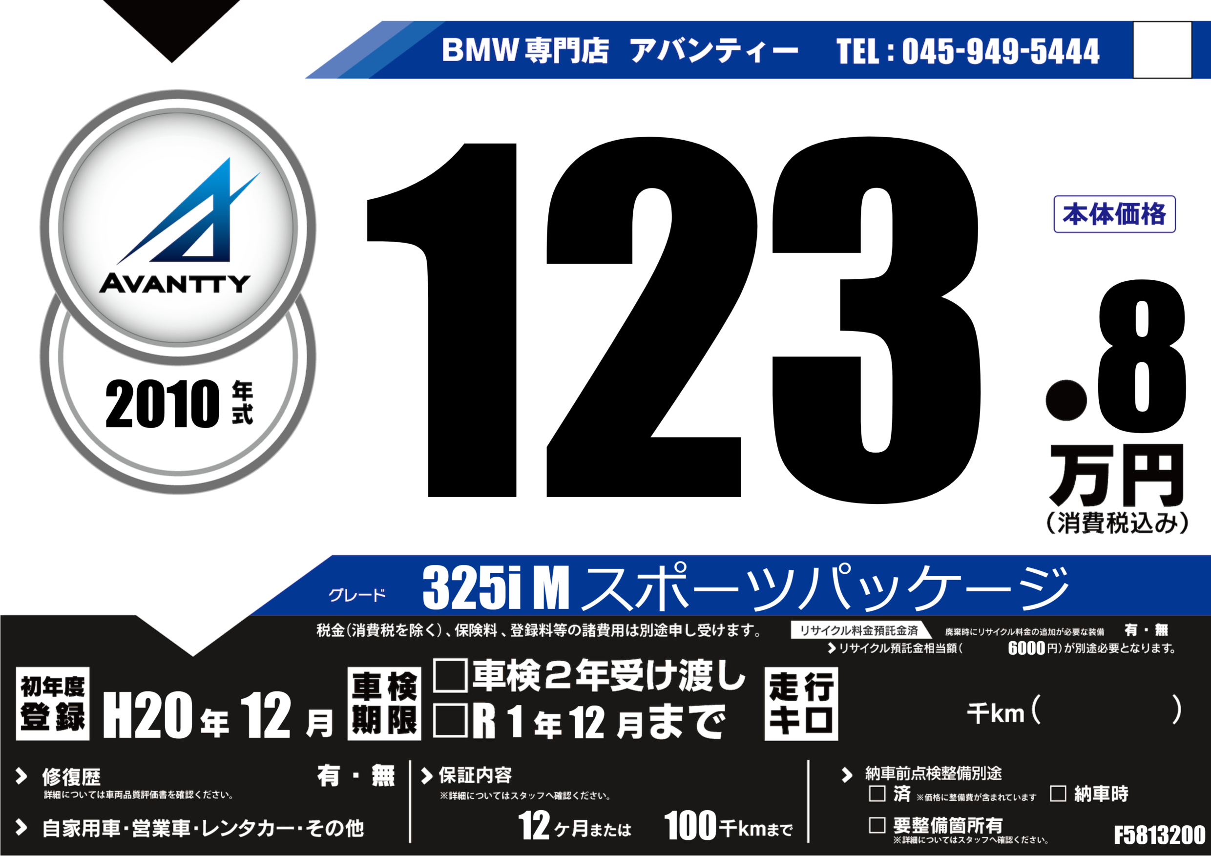 | 走行キロ | - | 初年度登録 | H20年12月 |