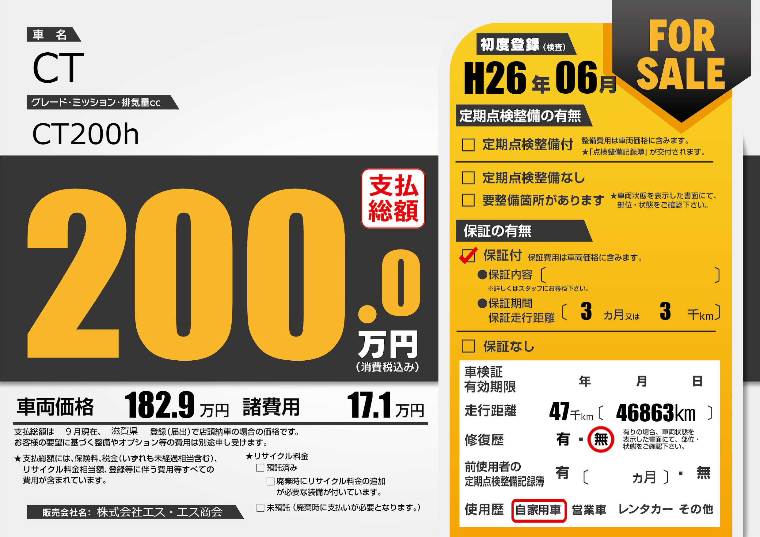 | 走行キロ | 4.7万km | 初年度登録 | H26年06月 |
