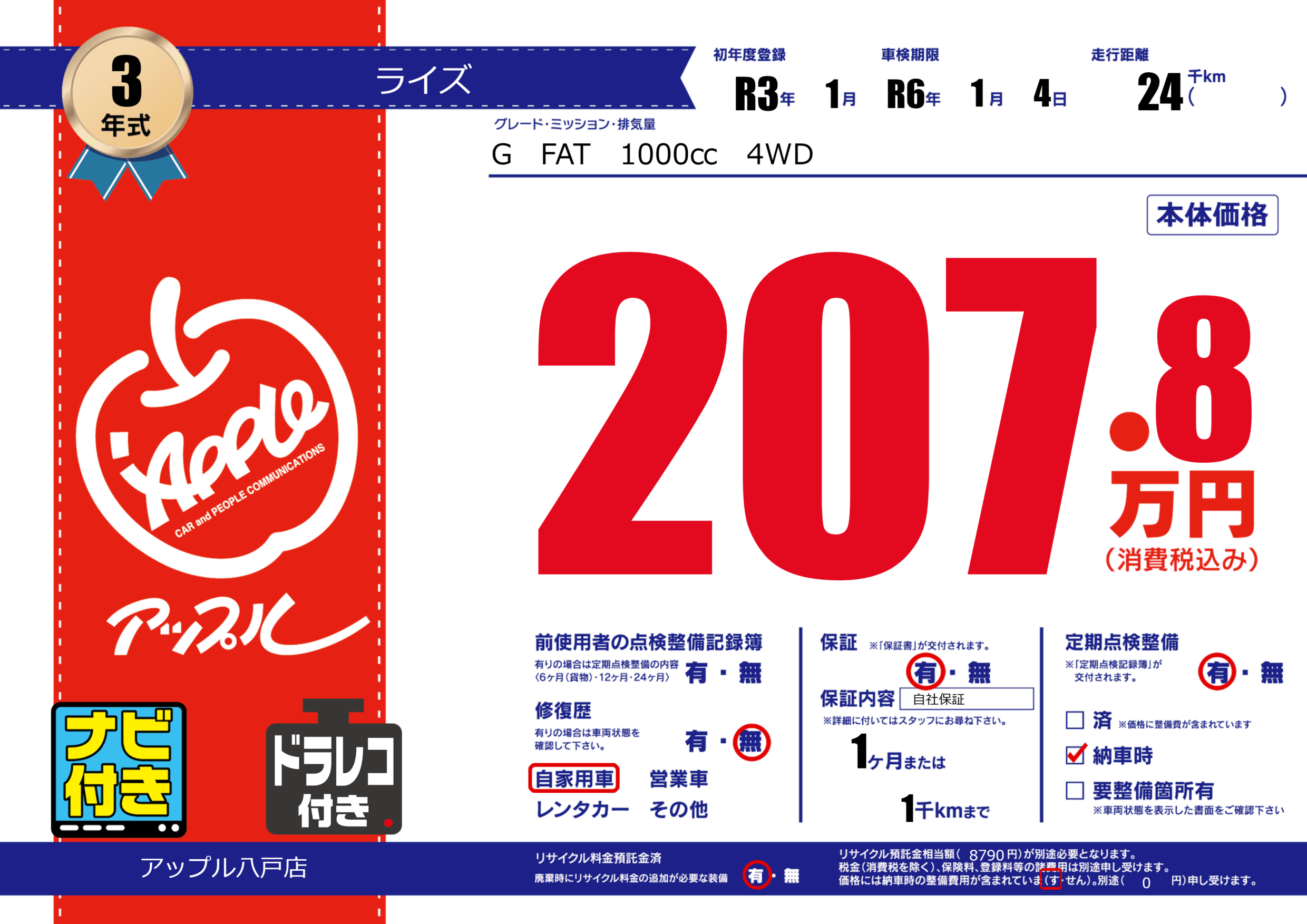 あり | 車検制限 | R6年1月4月 |