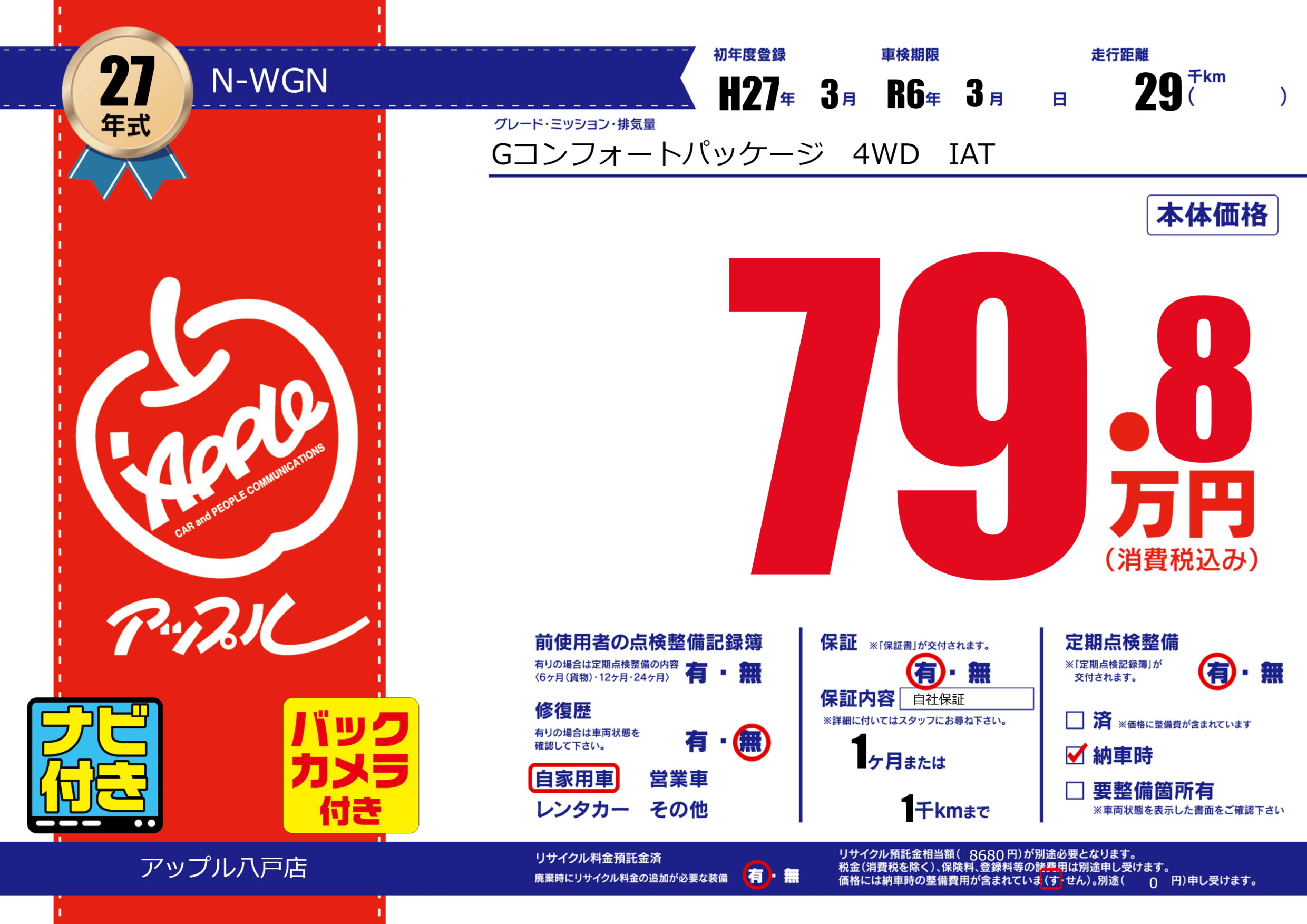 | 車名 | N-WGN | グレード ミッション 排気量 |