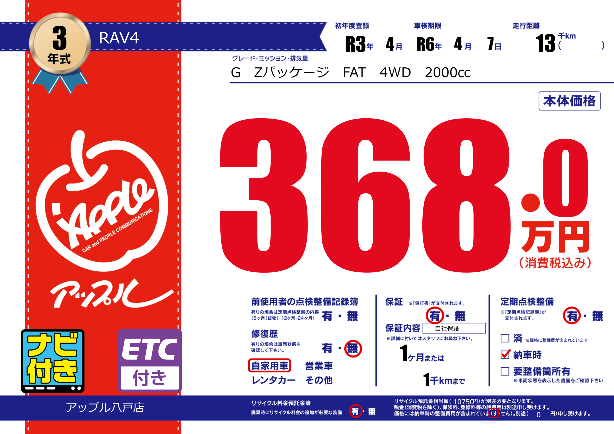 あり | 車検制限 | R6年4月7月 |