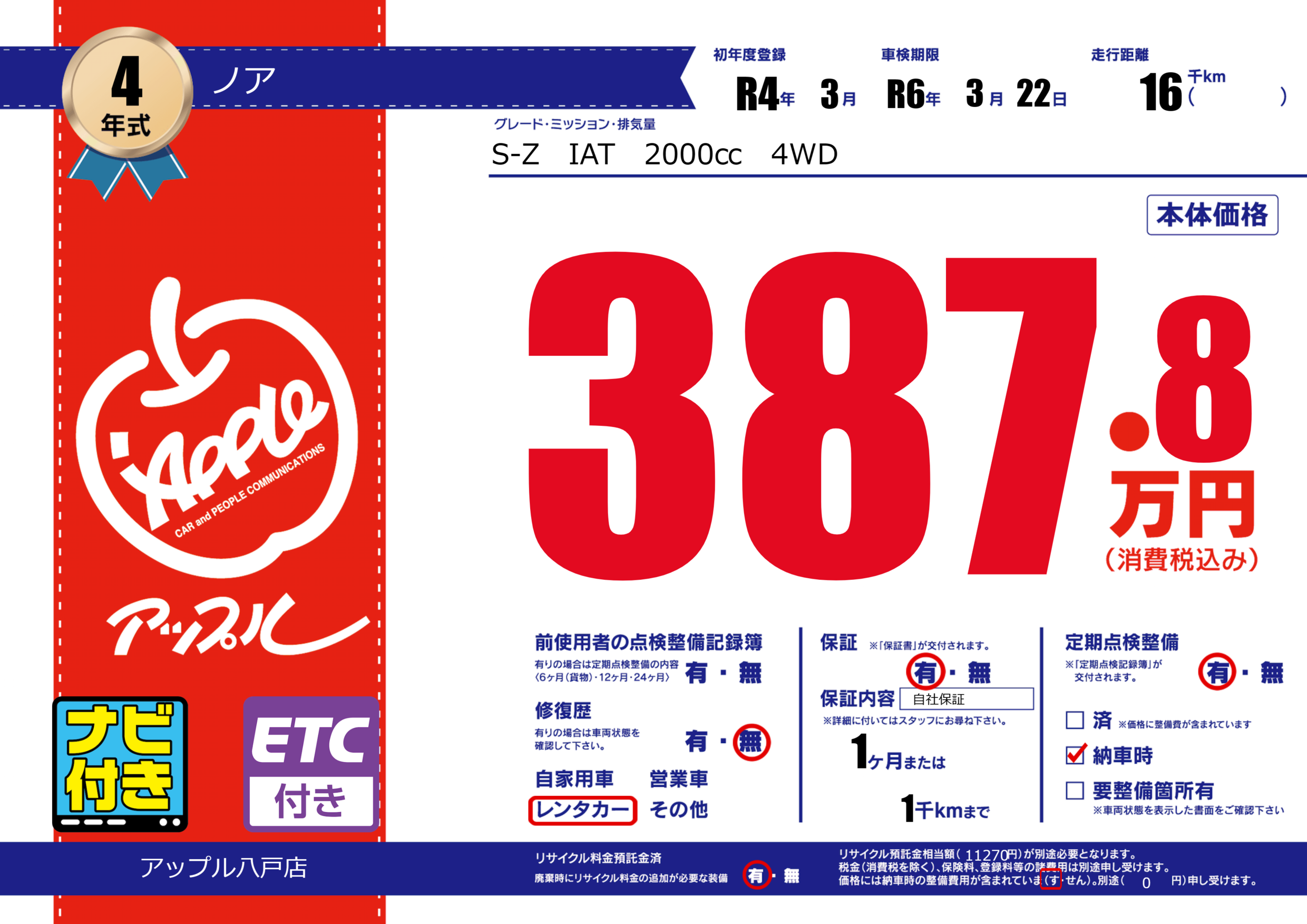 | 走行キロ | 1.6万km | 初年度登録 | R4年3月 |