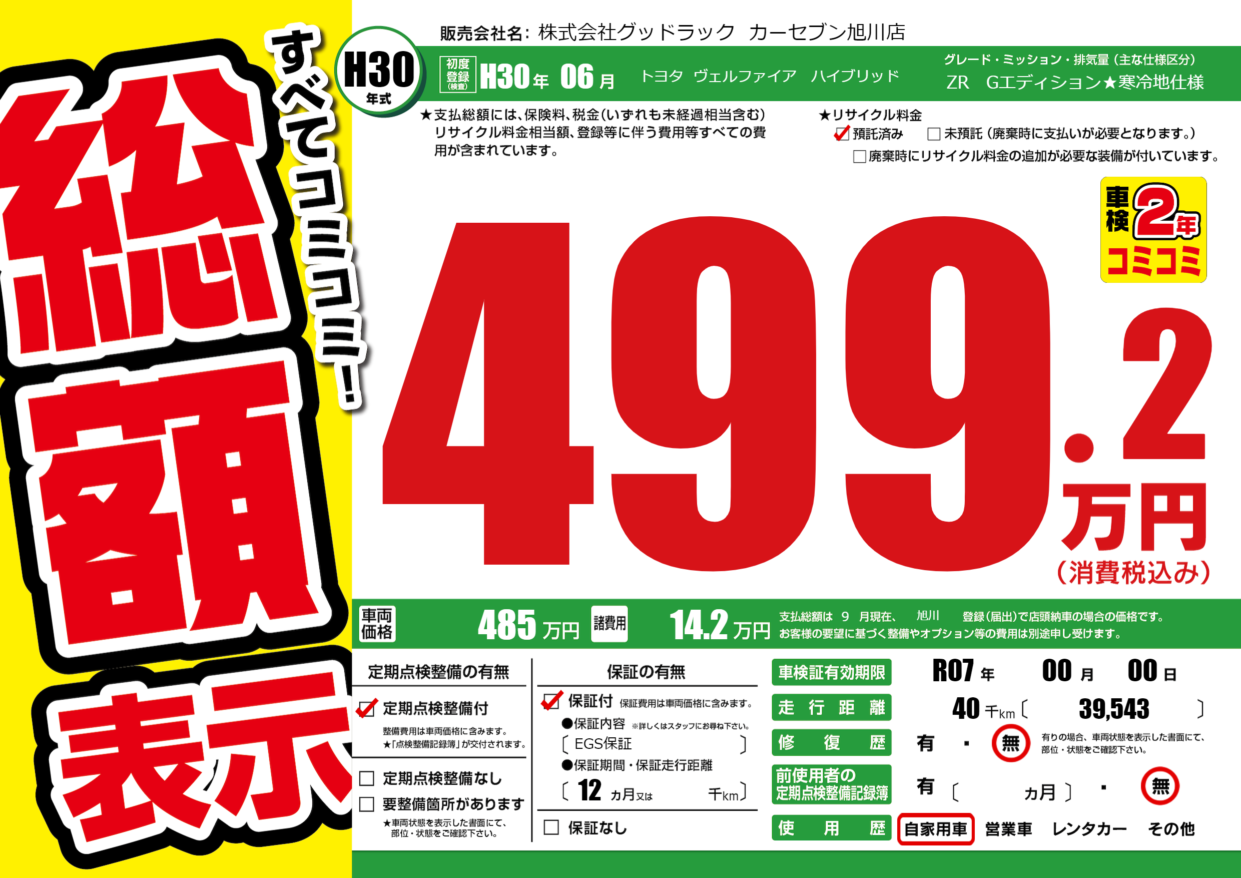 | 走行キロ | 4万km | 初年度登録 | H30年06月 |