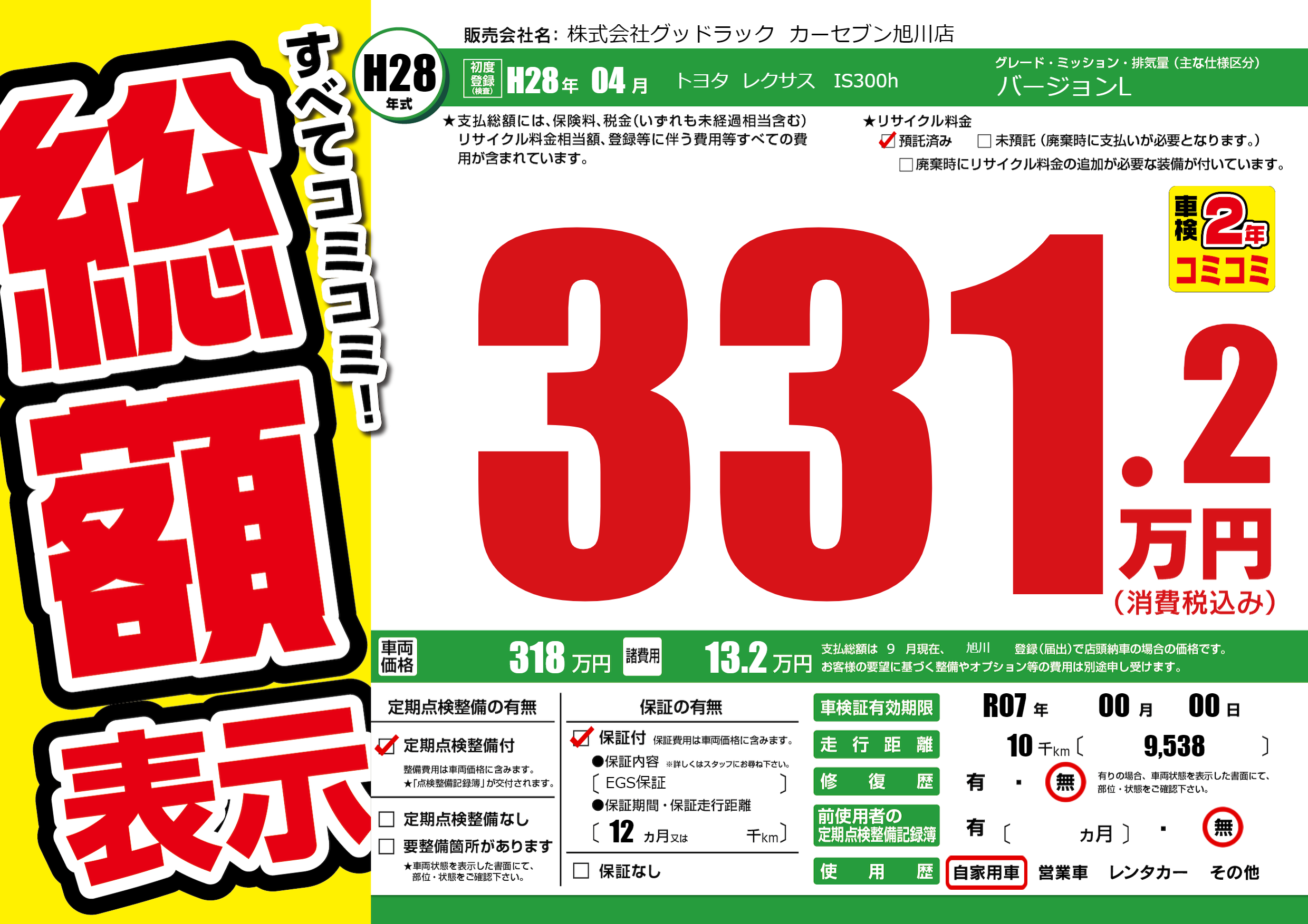 | 車名 | トヨタ レクサス IS300h | グレード ミッション 排気量 |