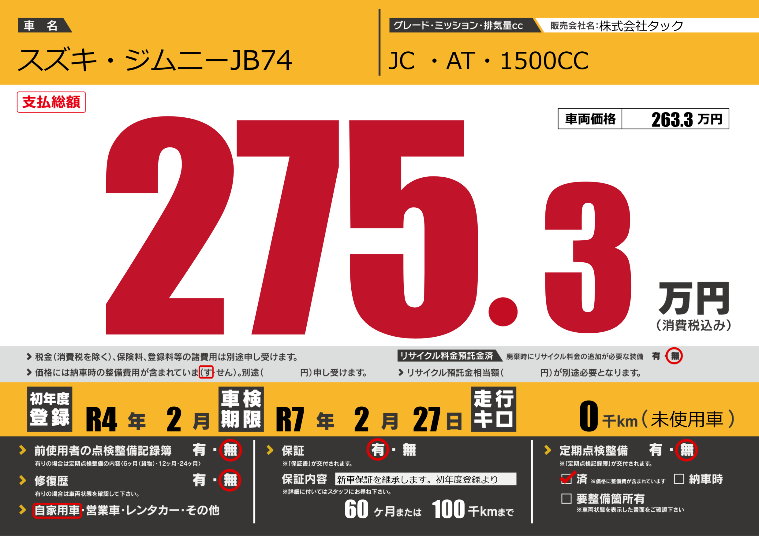 | 定期点検整備 | 定期点検整備なし 定期点検整備済み | ||