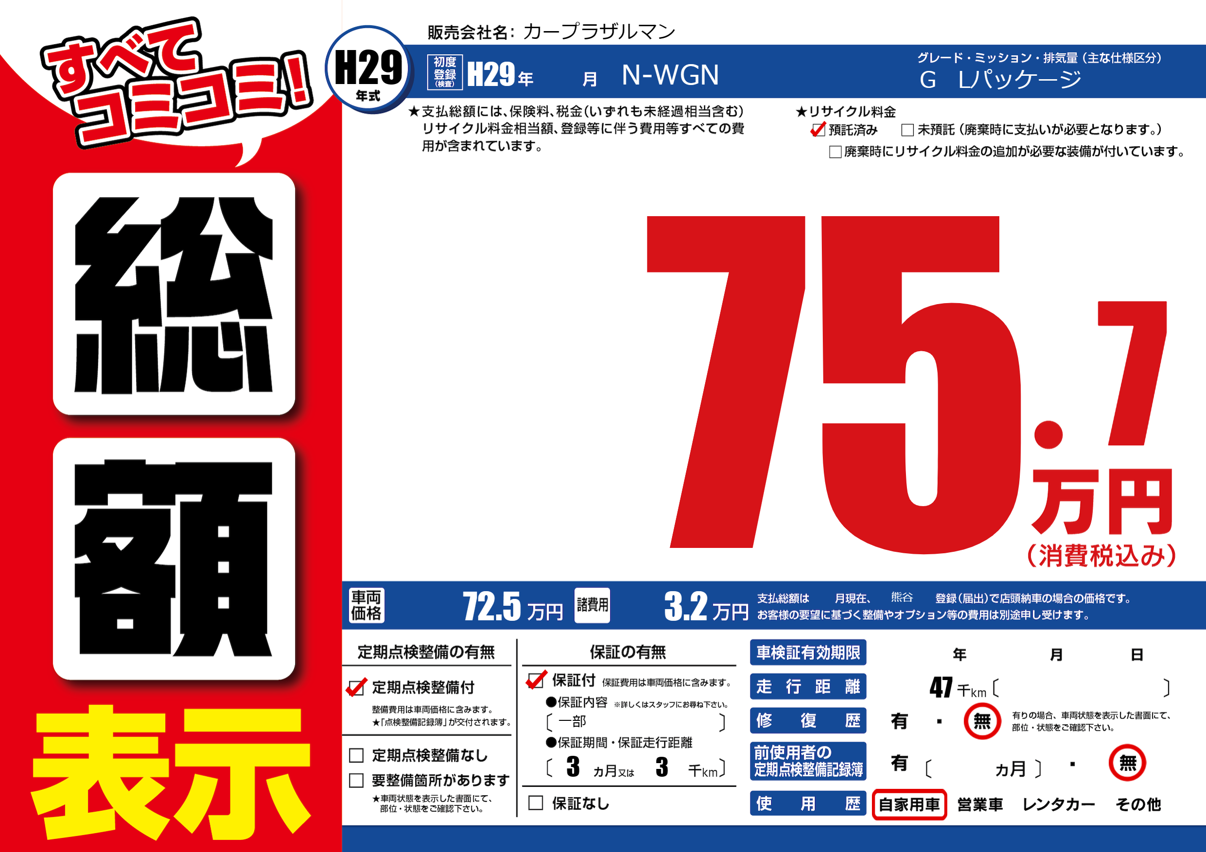 | 車名 | N-WGN | グレード ミッション 排気量 |