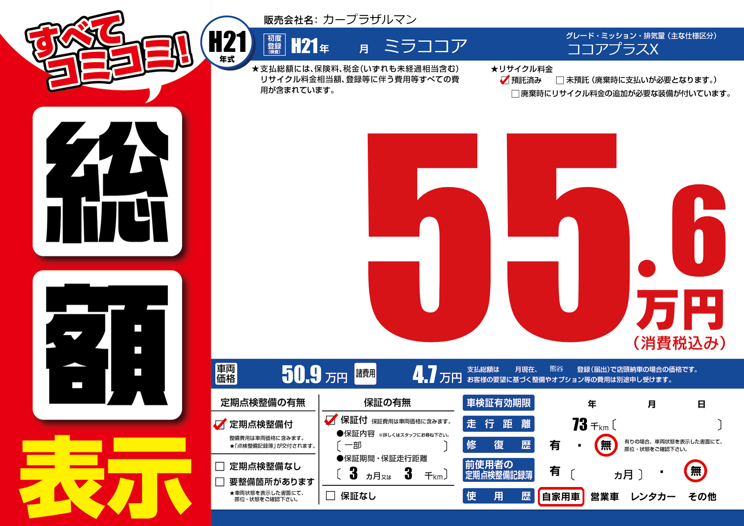 | 定期点検整備 | 定期点検整備あり | ||