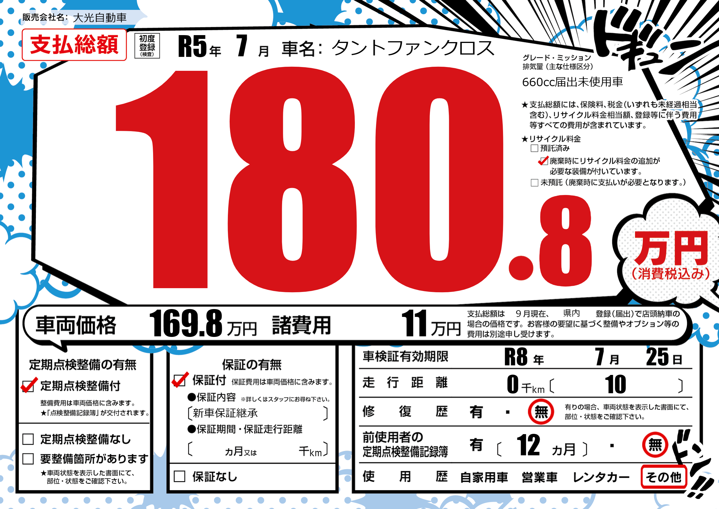 | 車名 | タントファンクロス | グレード ミッション 排気量 |