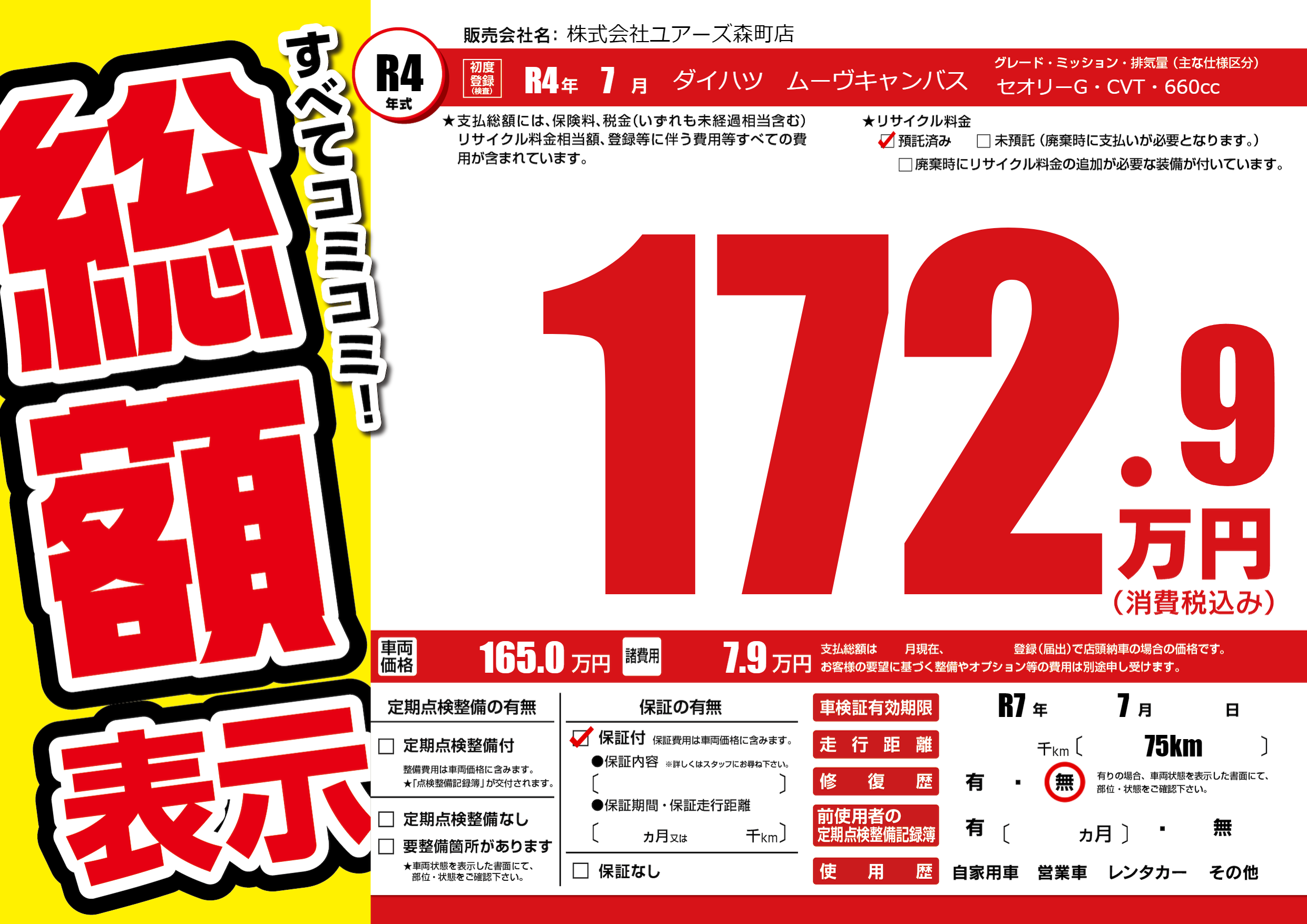 なし | 車検制限 | R7年7月---月 |