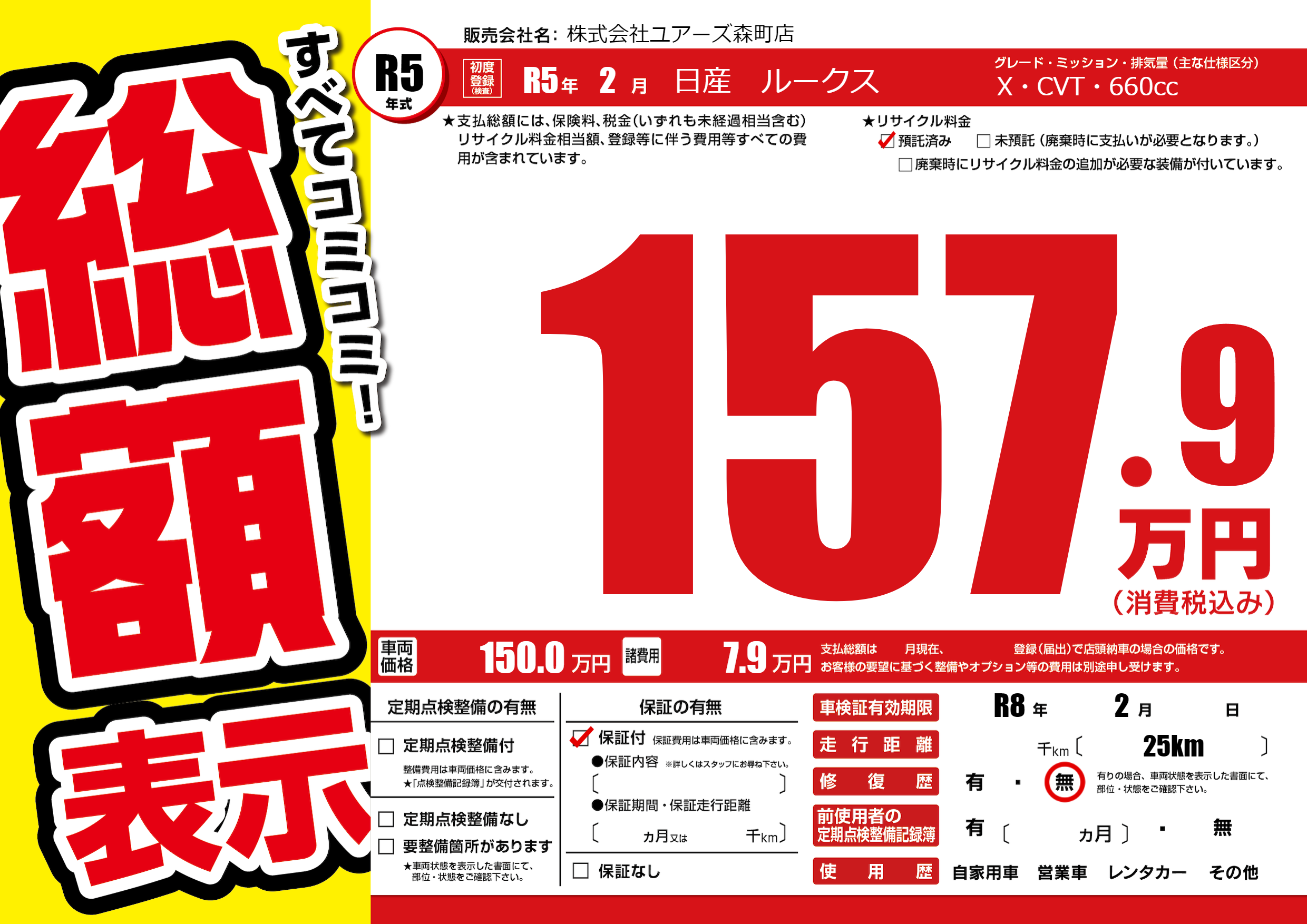 | 走行キロ | - | 初年度登録 | R5年2月 |