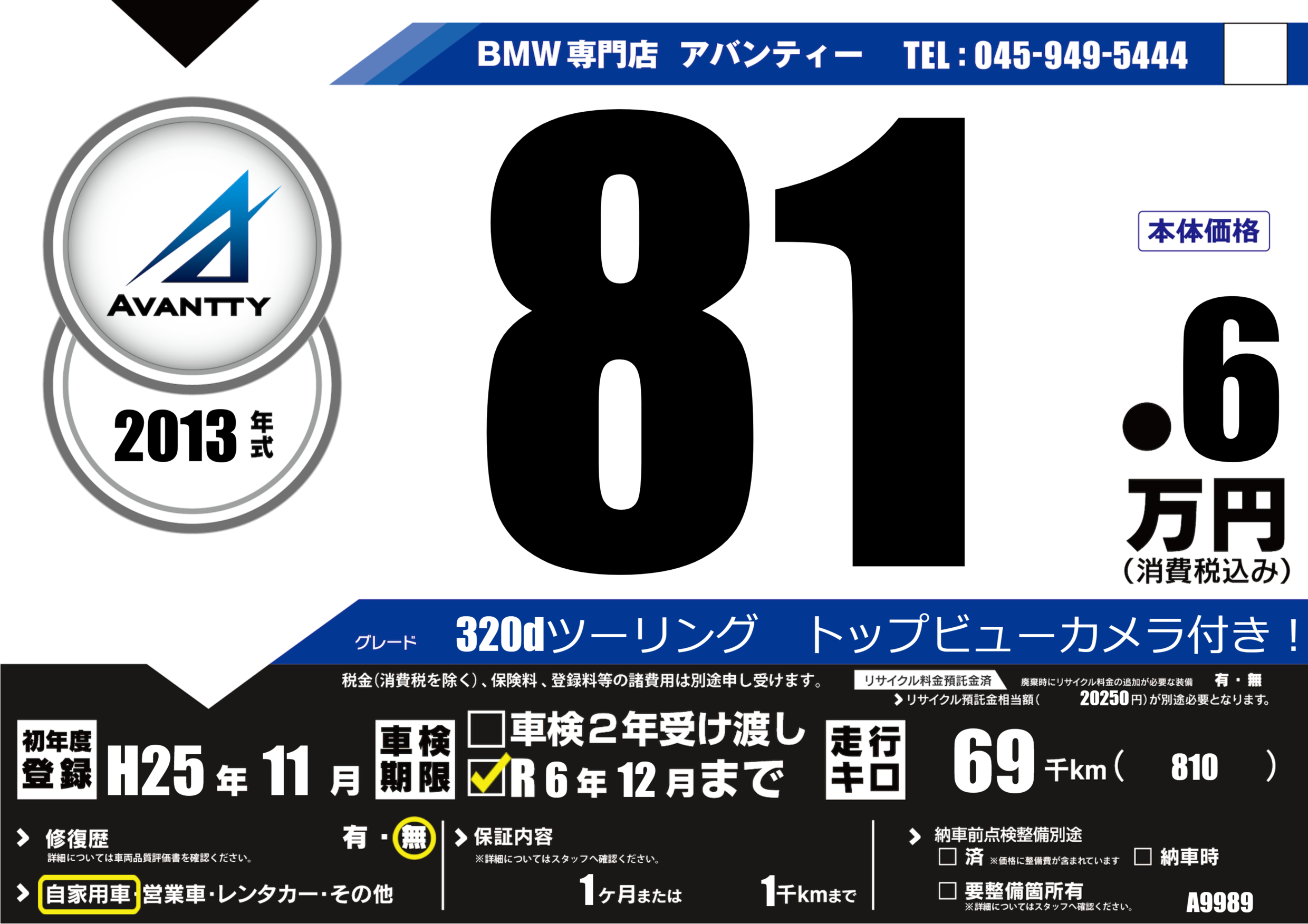 | 走行キロ | 6.9万km | 初年度登録 | H25年11月 |