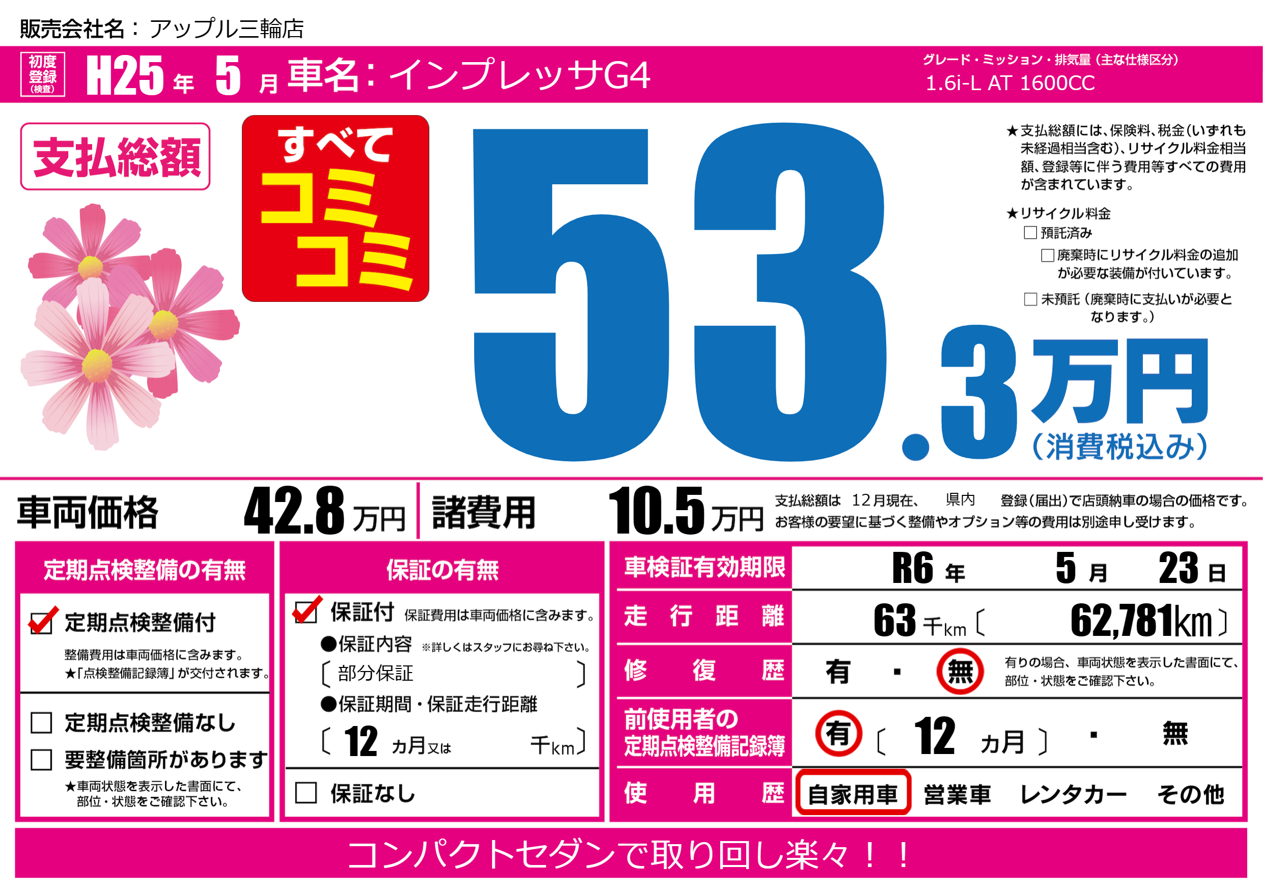 | 車検制限 | R6年 5月 23日 | ||