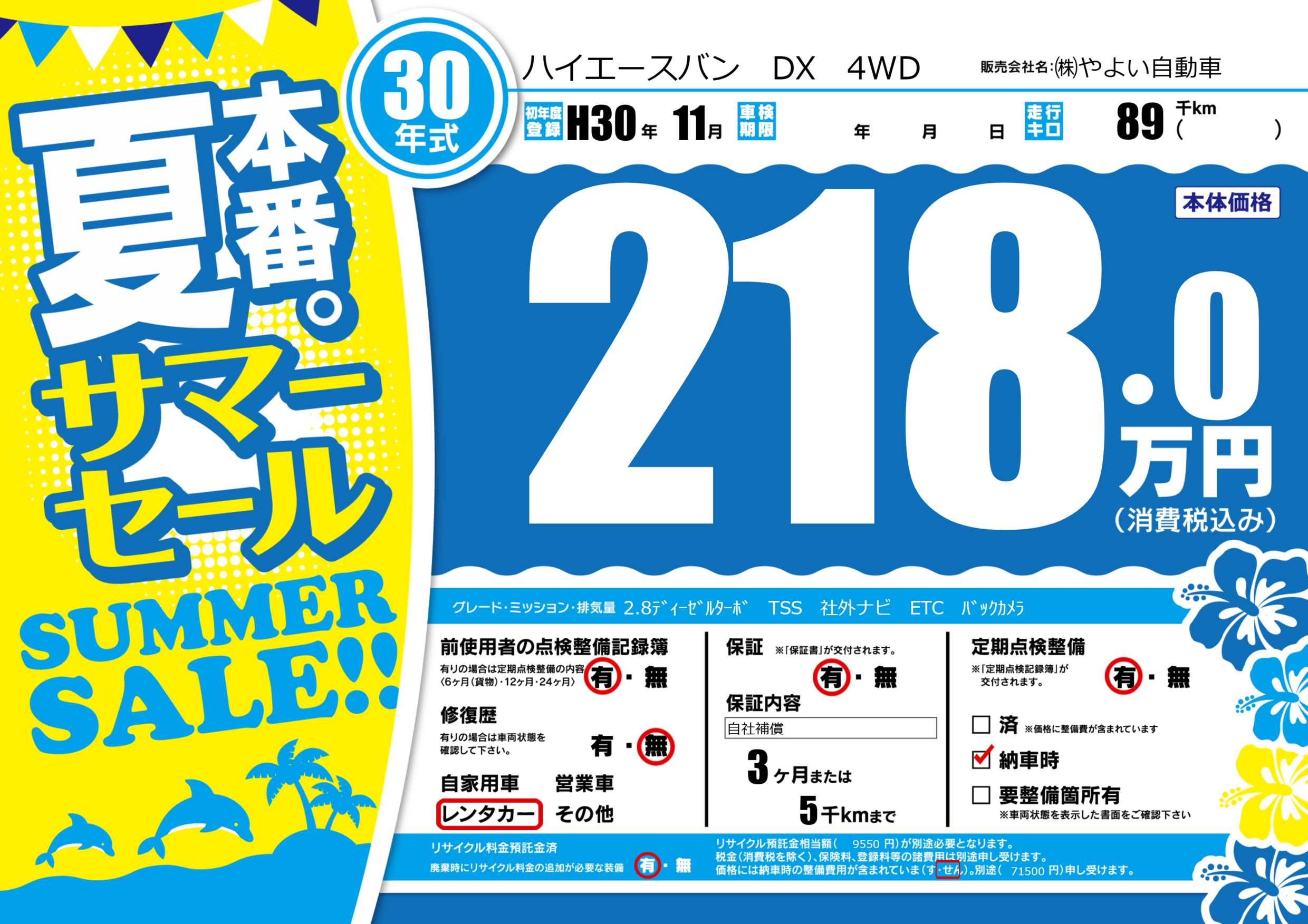 | 走行キロ | 8.9万km | 初年度登録 | H30年11月 |