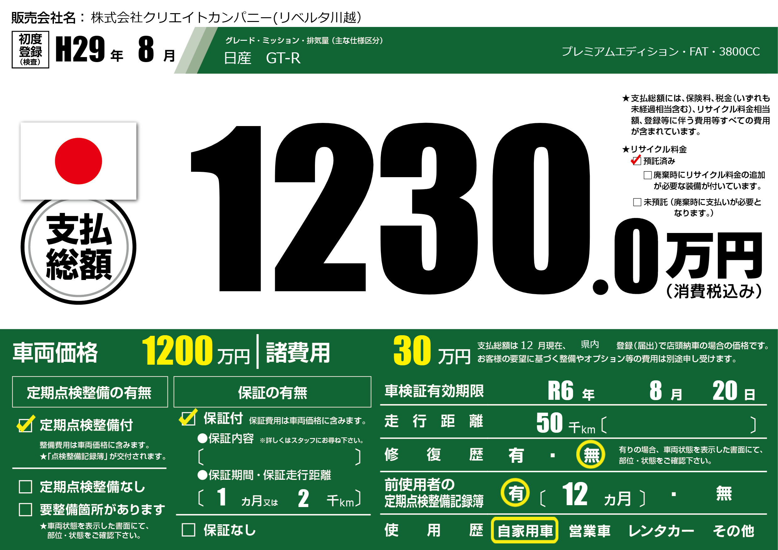 | 車名 | 日産 GT-R | グレード ミッション 排気量 |