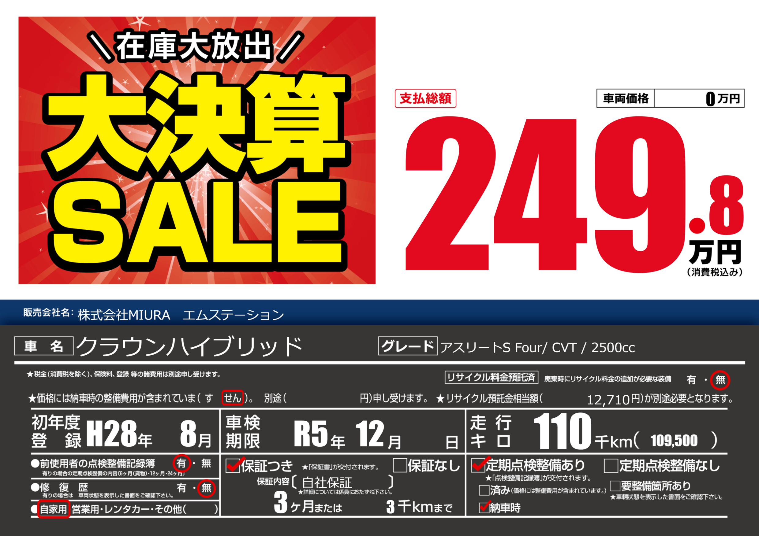 | 車名 | クラウンハイブリッド | グレード ミッション 排気量 |