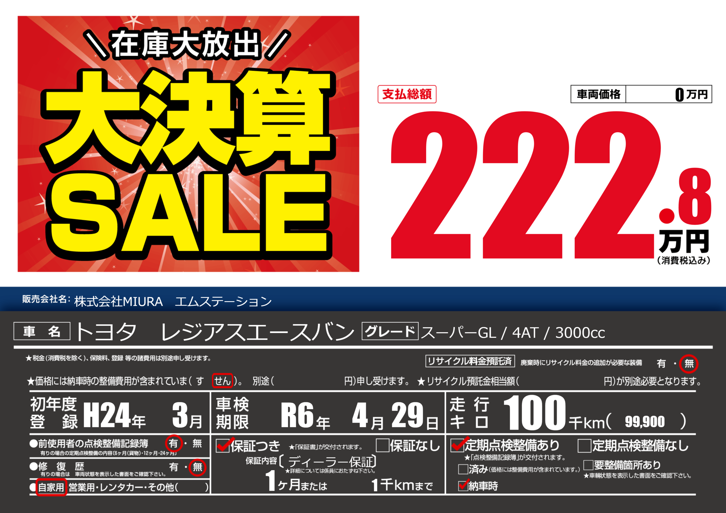 | 定期点検整備 | 定期点検整備あり 納車時あり | ||