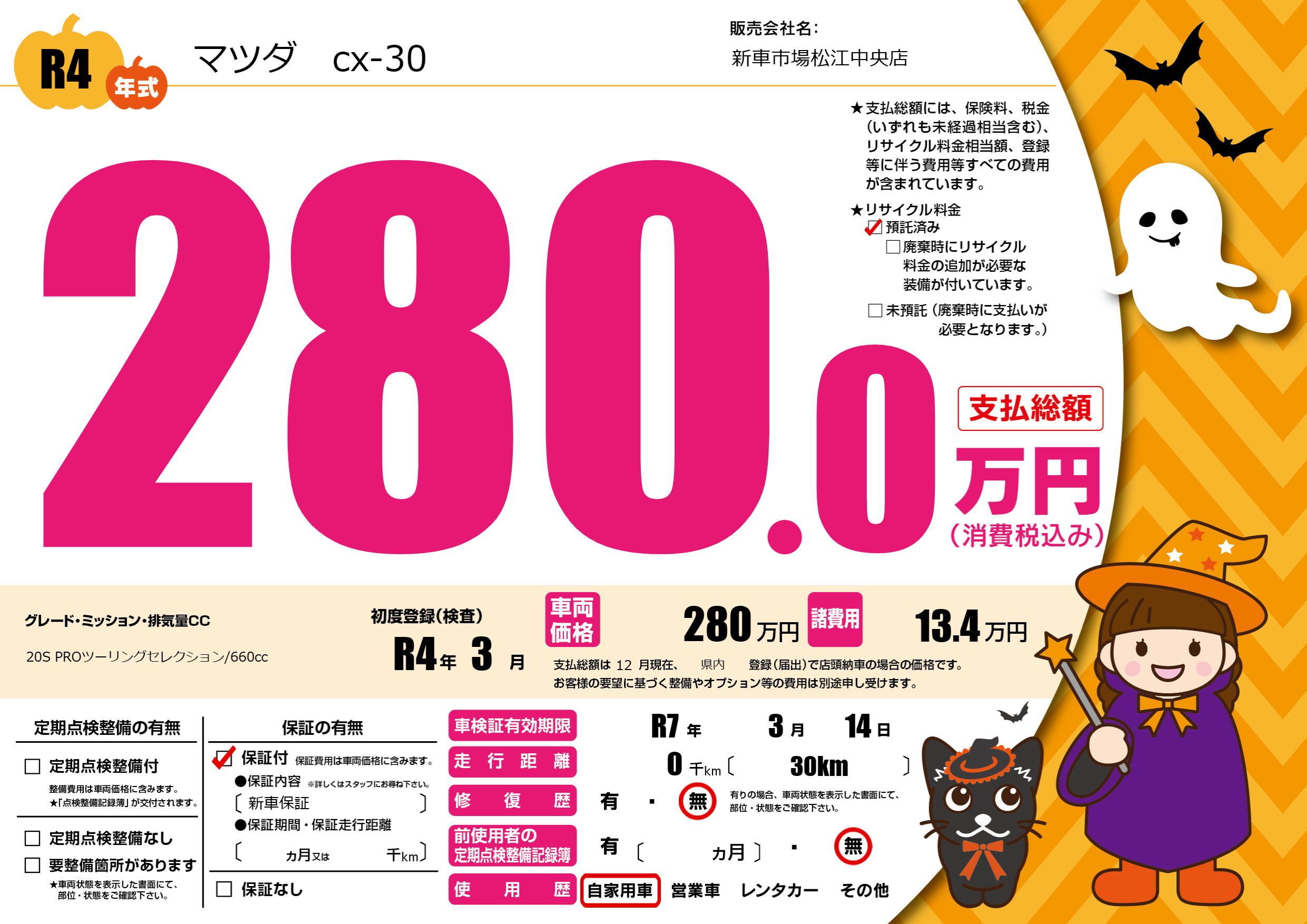 | 車名 | マツダ cx-30 | グレード ミッション 排気量 |