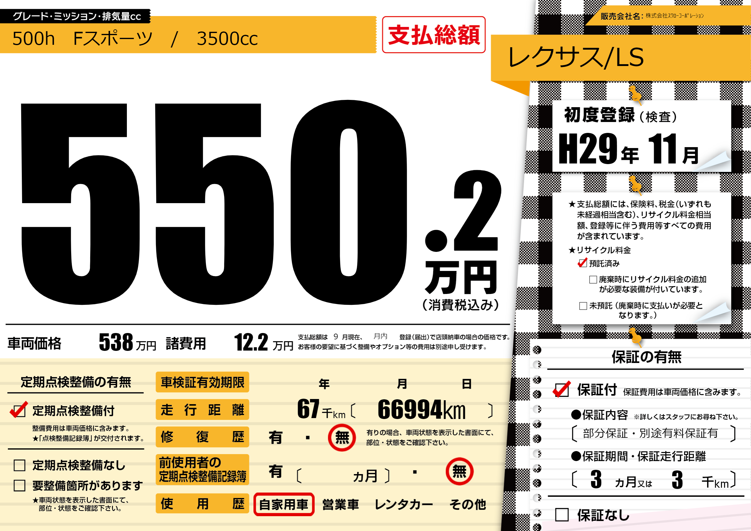 | 走行キロ | 6.7万km | 初年度登録 | H29年11月 |