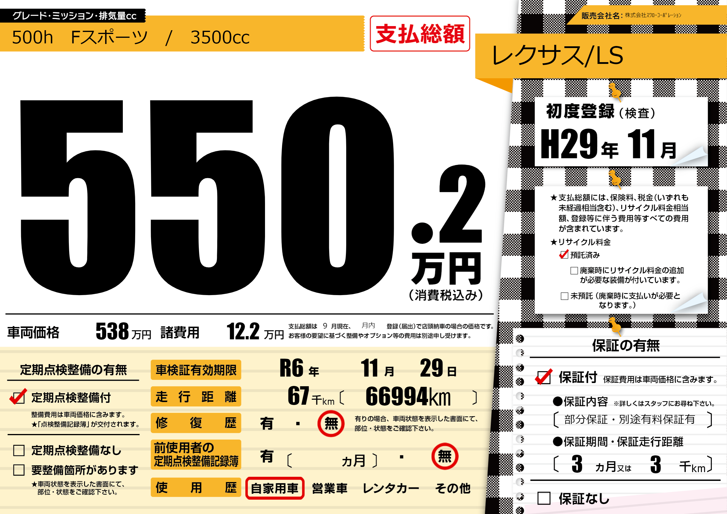 500h Fスポーツ / 3500cc |