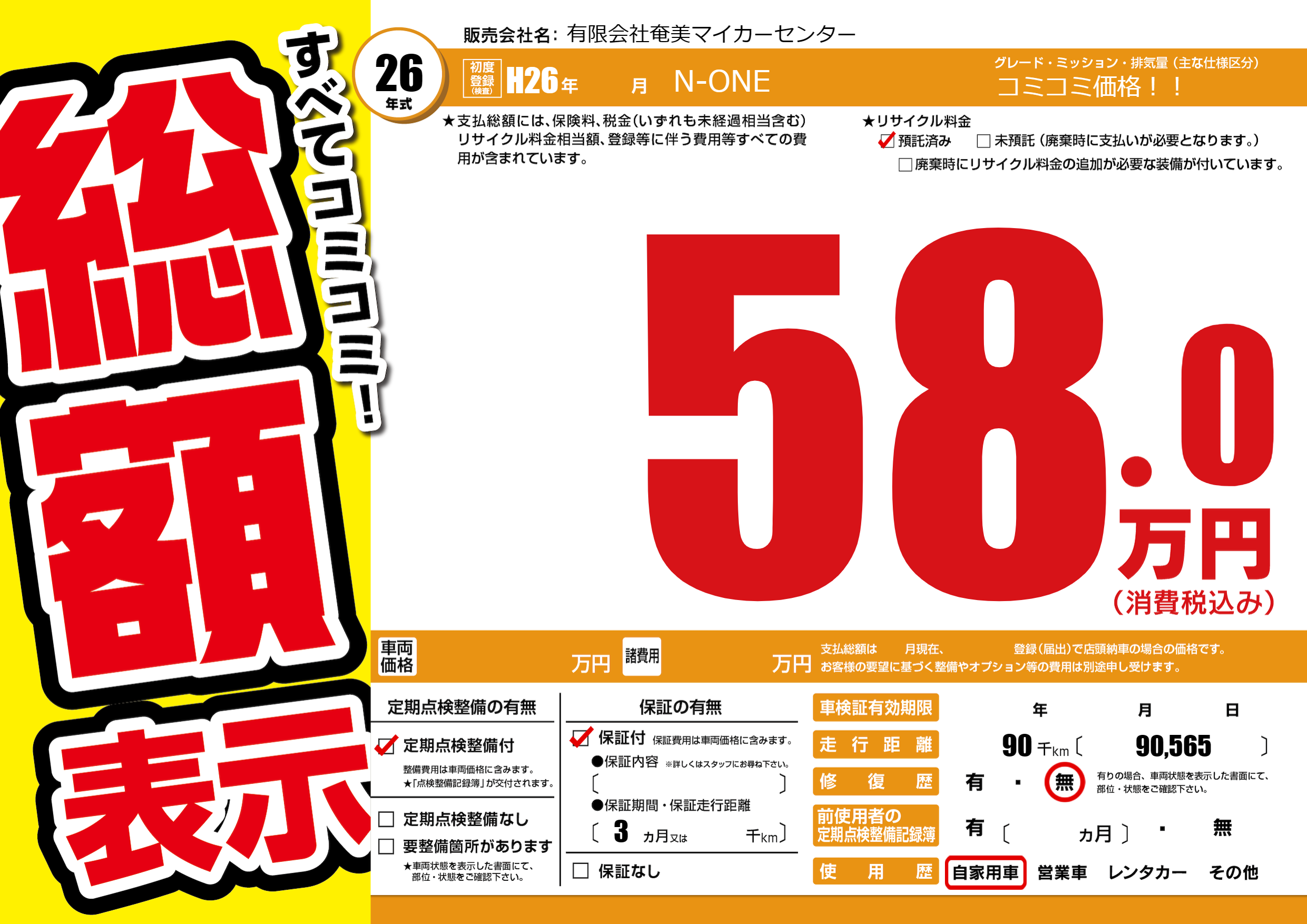 | 車名 | N-ONE | グレード ミッション 排気量 |