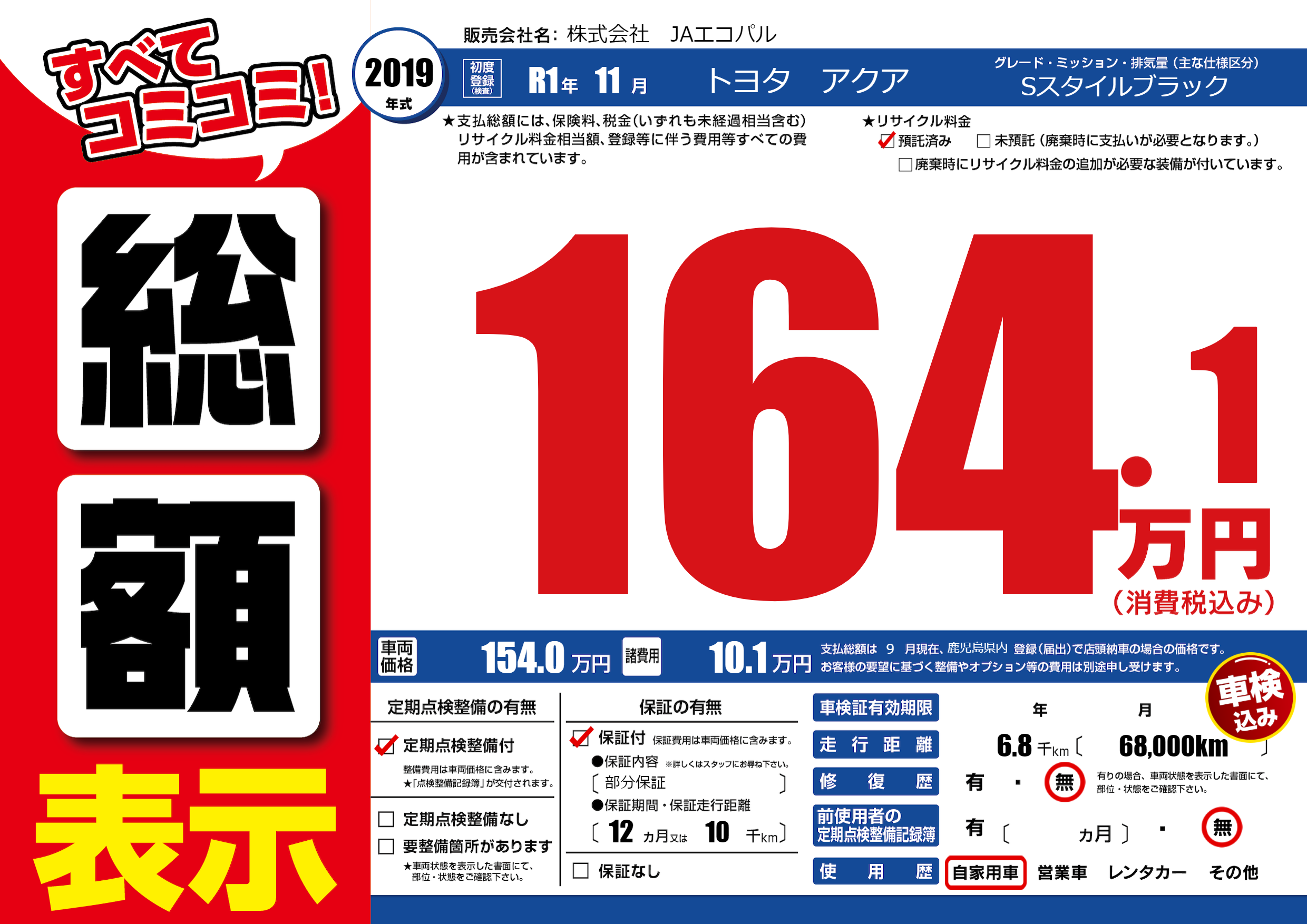 | 定期点検整備 | 定期点検整備あり | ||