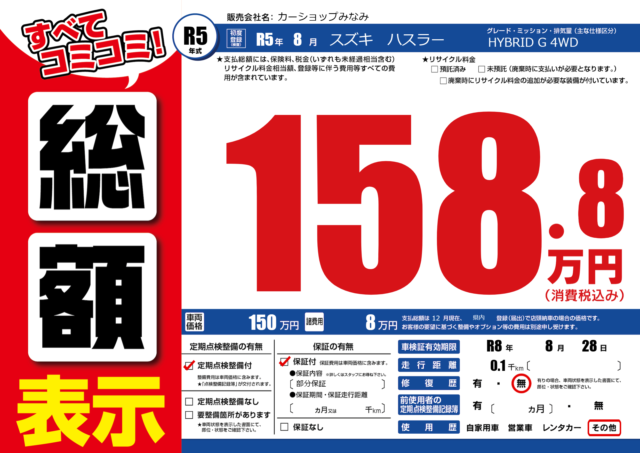| 車名 | スズキ ハスラー | グレード ミッション 排気量 |