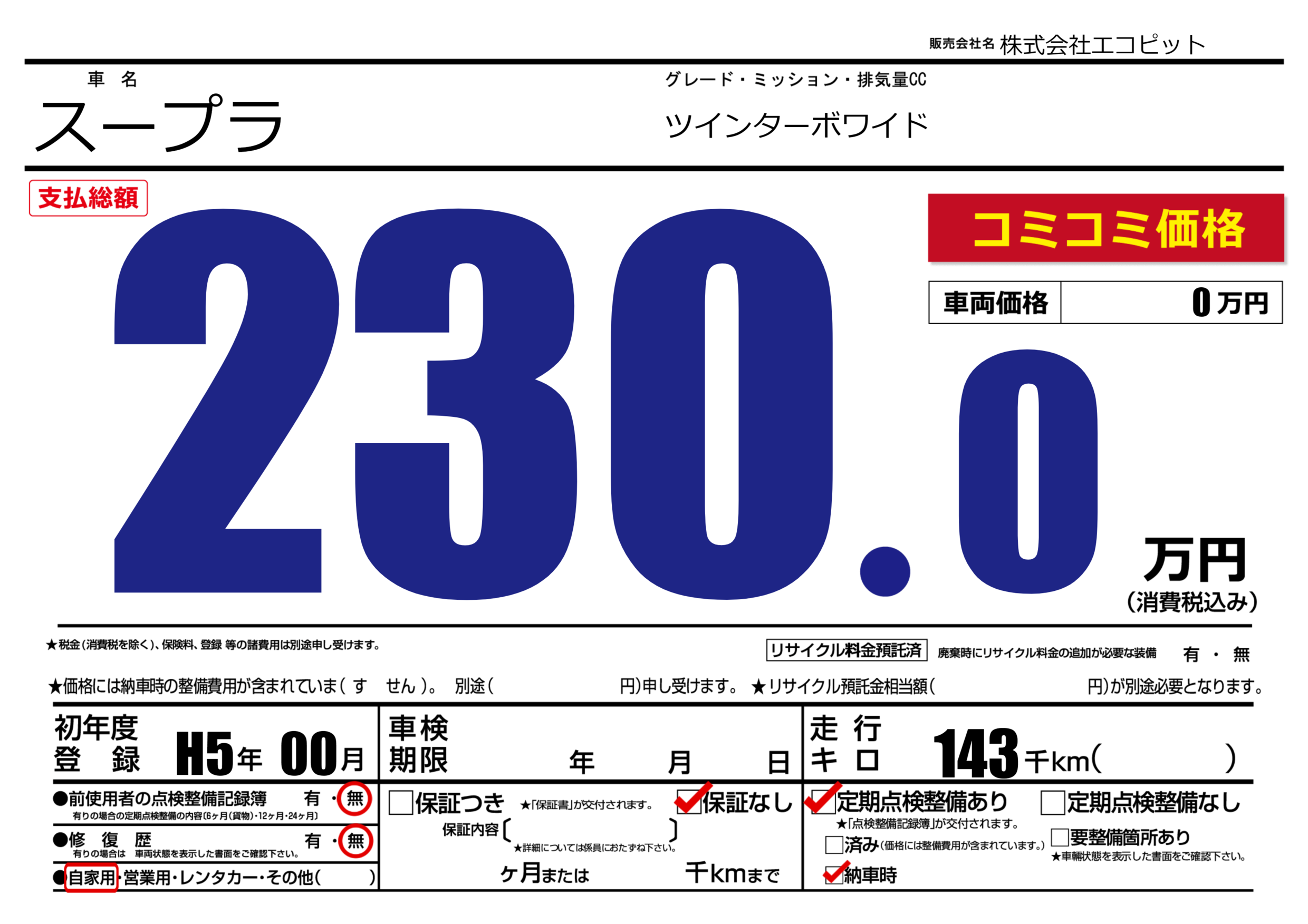 | 車名 | スープラ | グレード ミッション 排気量 |