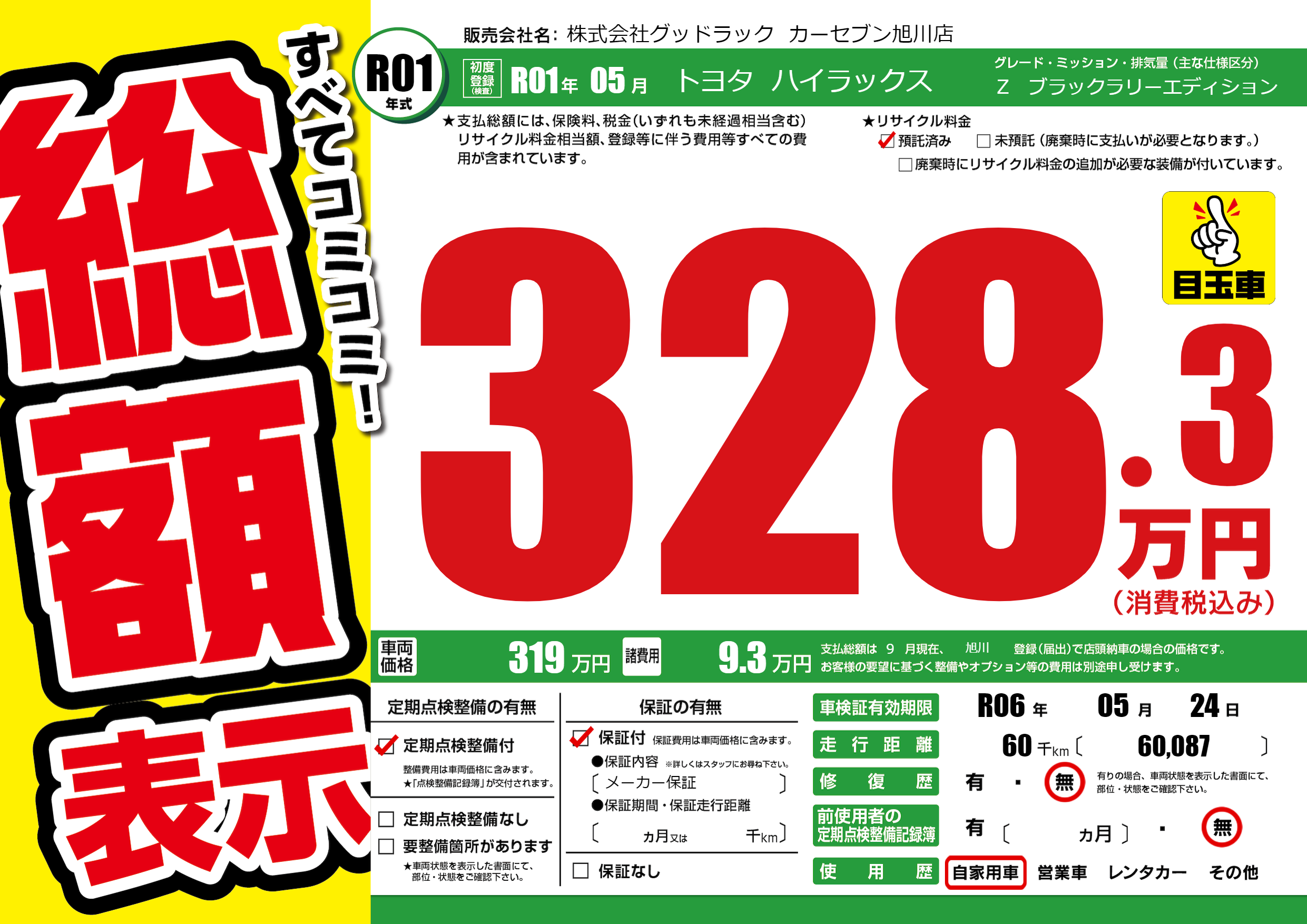 | 走行キロ | 6万km | 初年度登録 | R01年05月 |