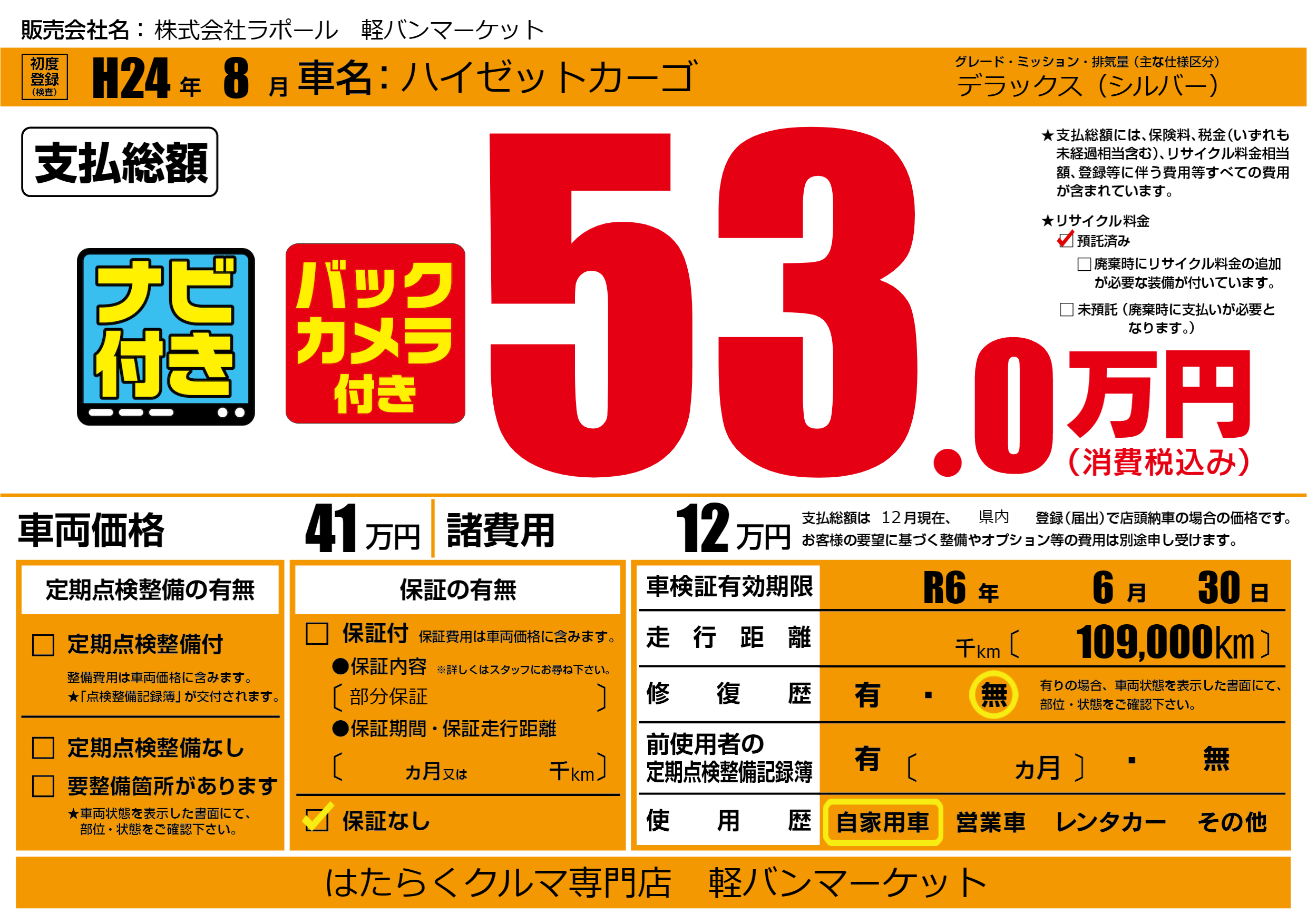 | 車検制限 | R6年 6月 30日 | ||