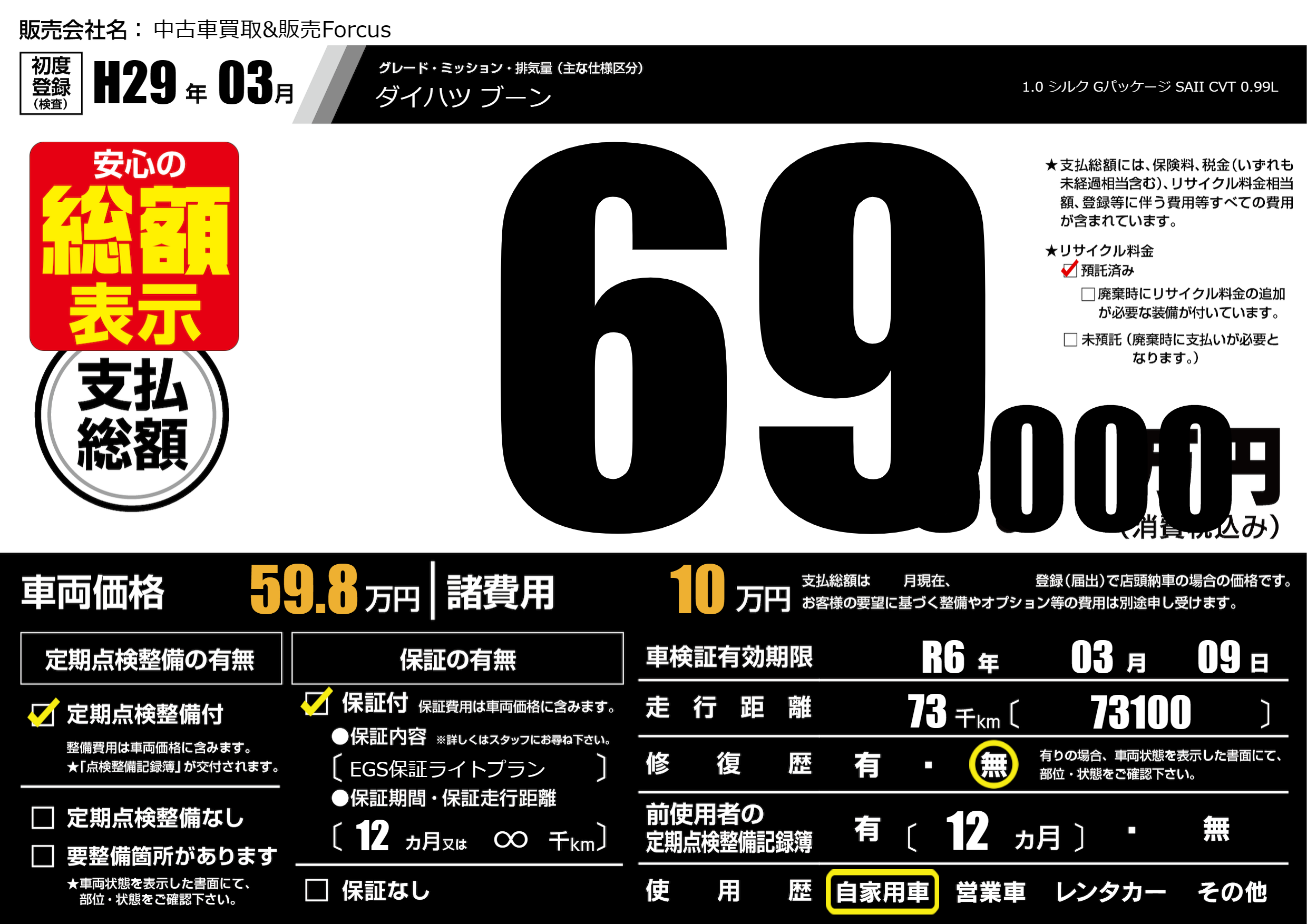 | 車検制限 | R6年 03月 09日 | ||