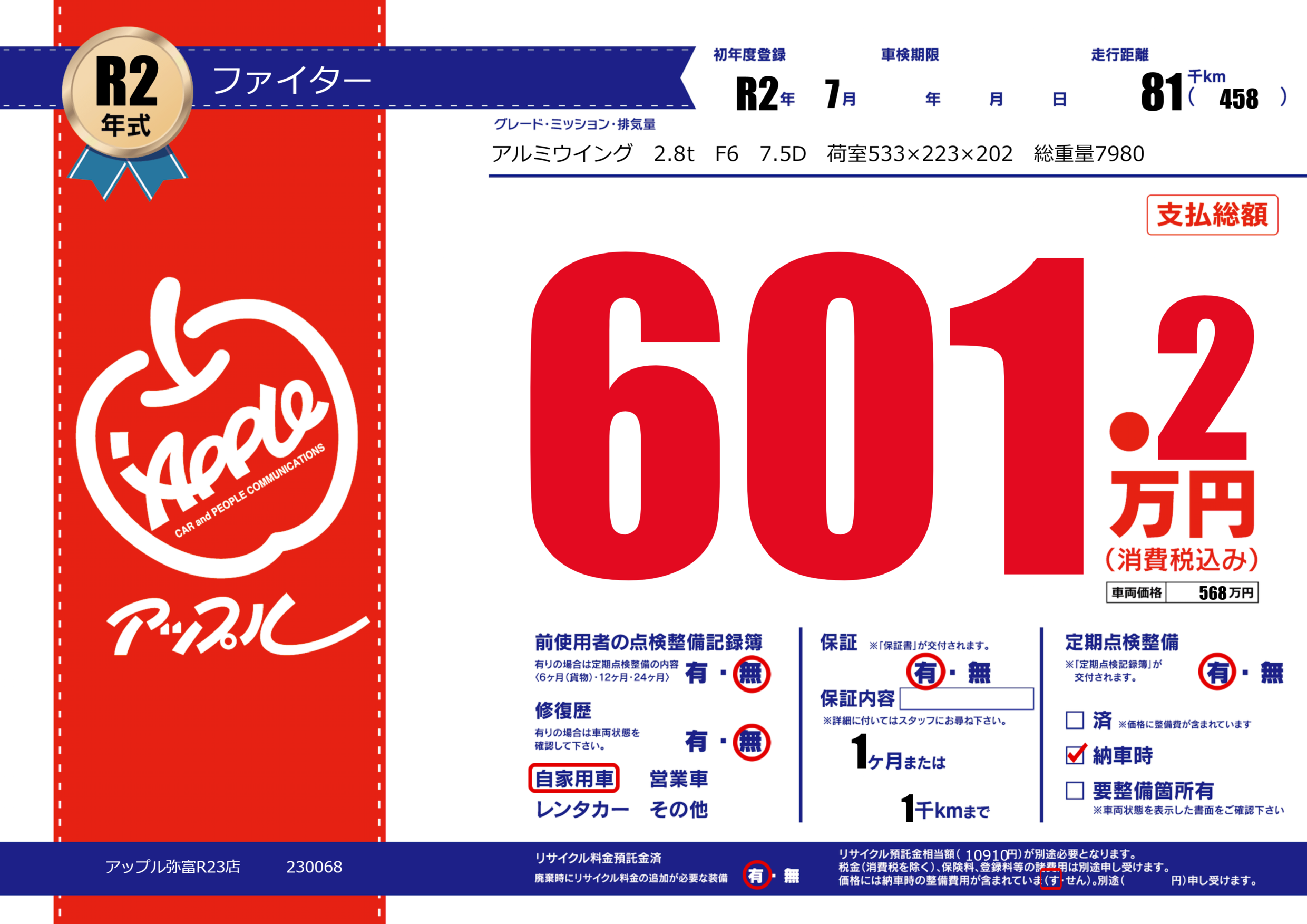 | 走行キロ | 8.1万km | 初年度登録 | R2年7月 |