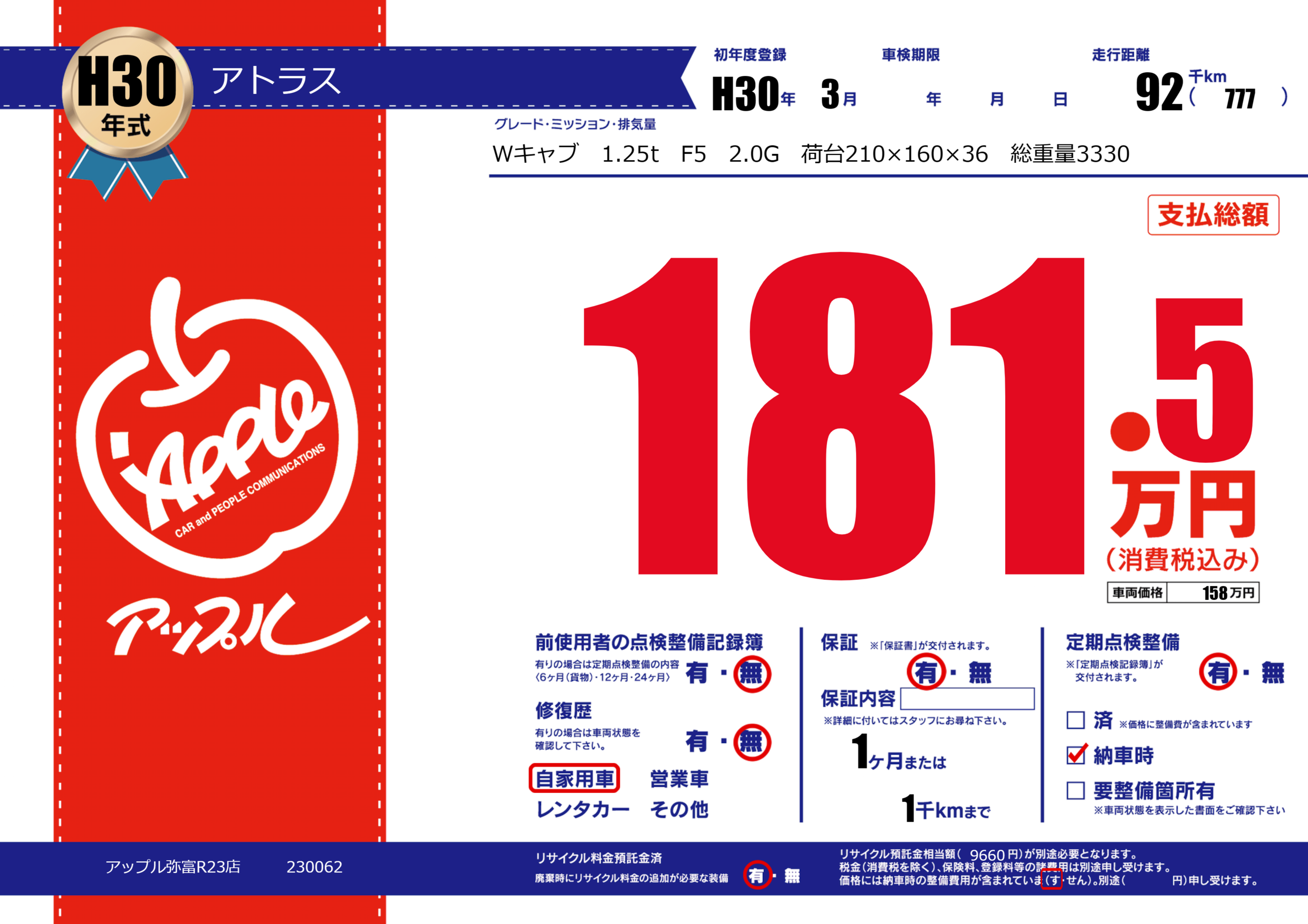| 車名 | アトラス | グレード ミッション 排気量 |