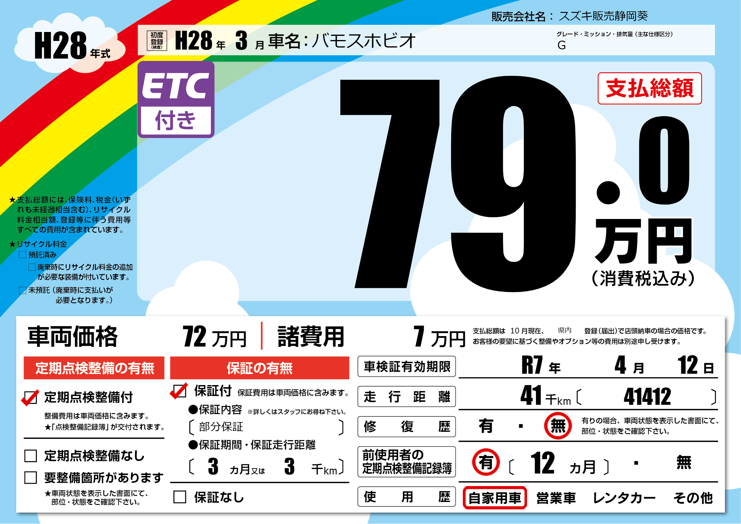 | 車名 | バモスホビオ | グレード ミッション 排気量 |
