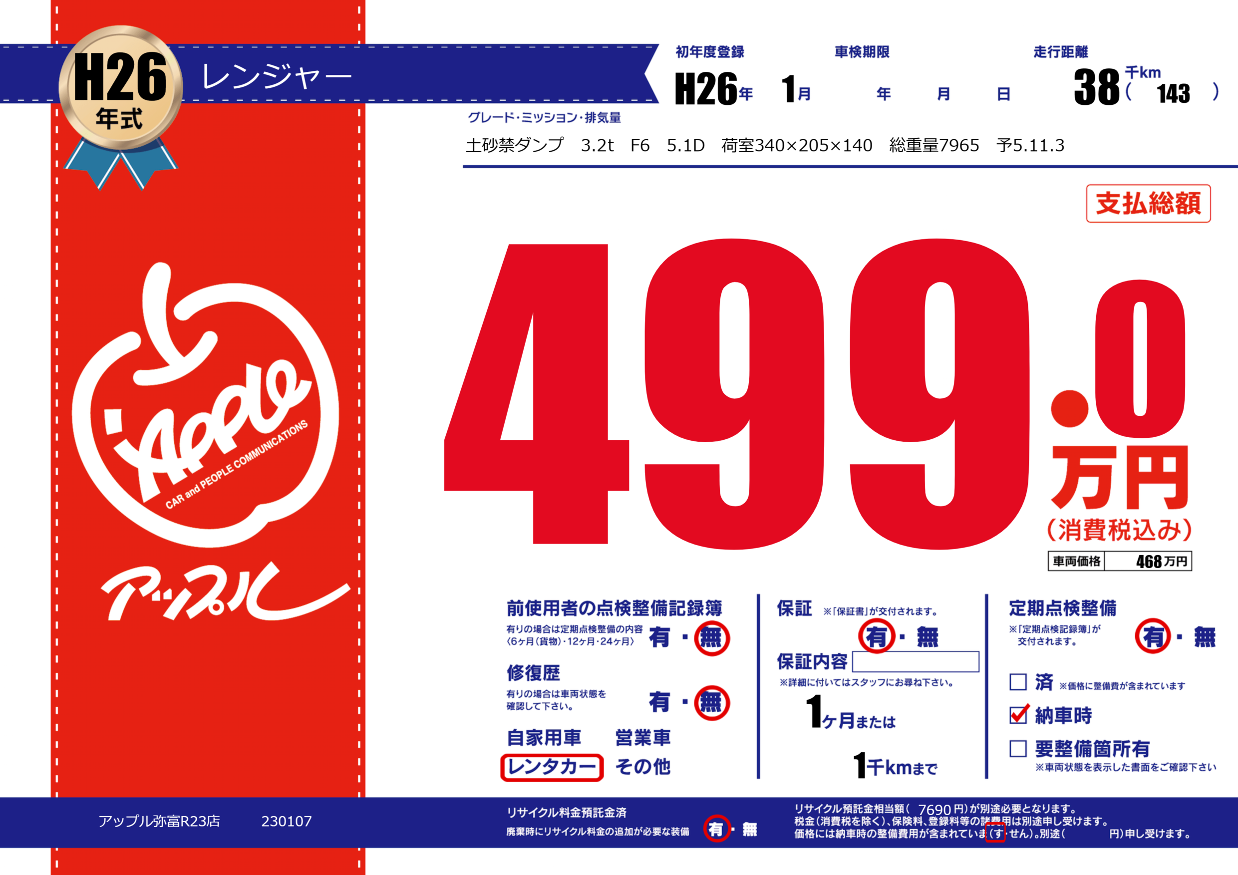 | 走行キロ | 3.8万km | ||