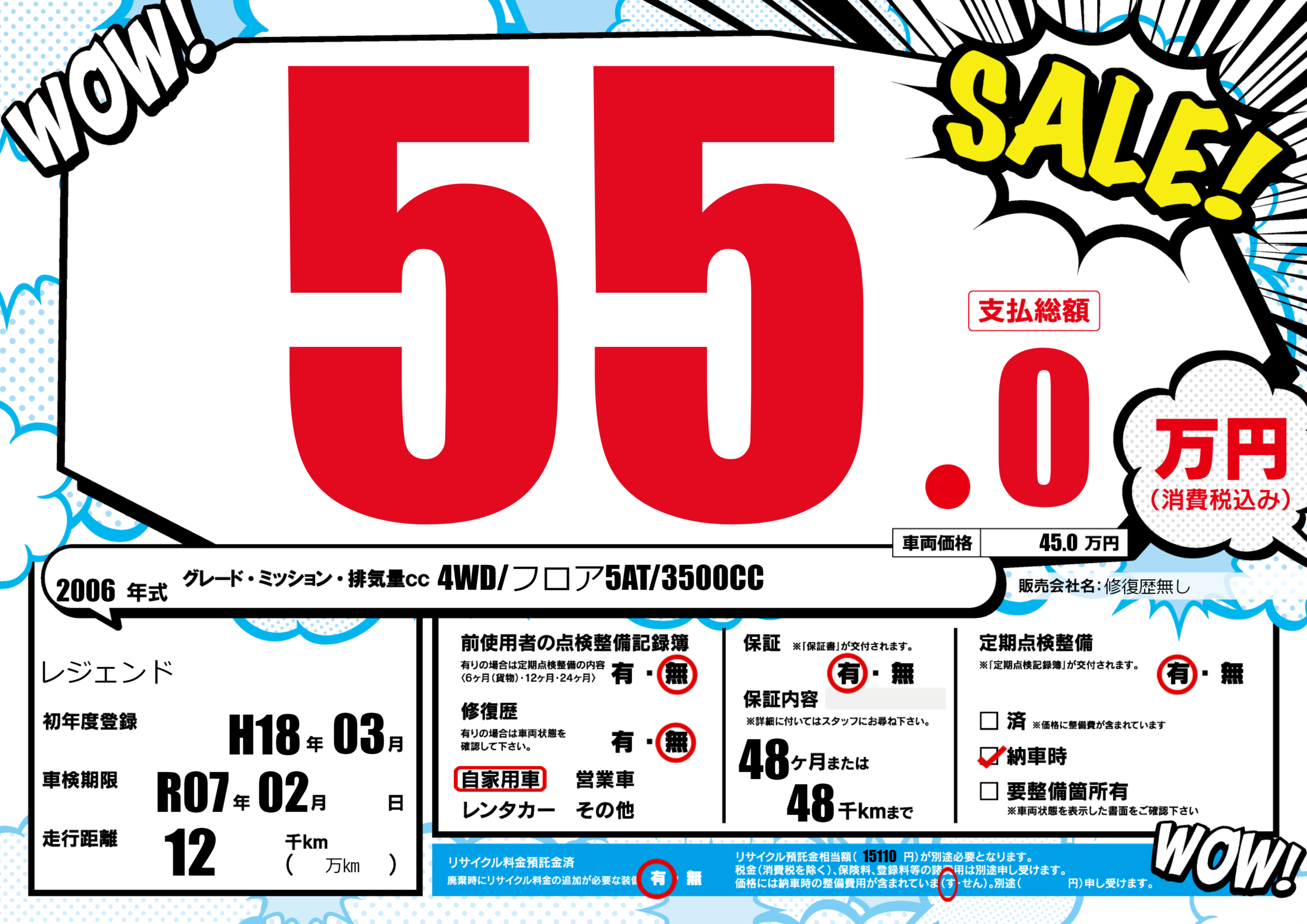 | 車名 | レジェンド | グレード ミッション 排気量 |