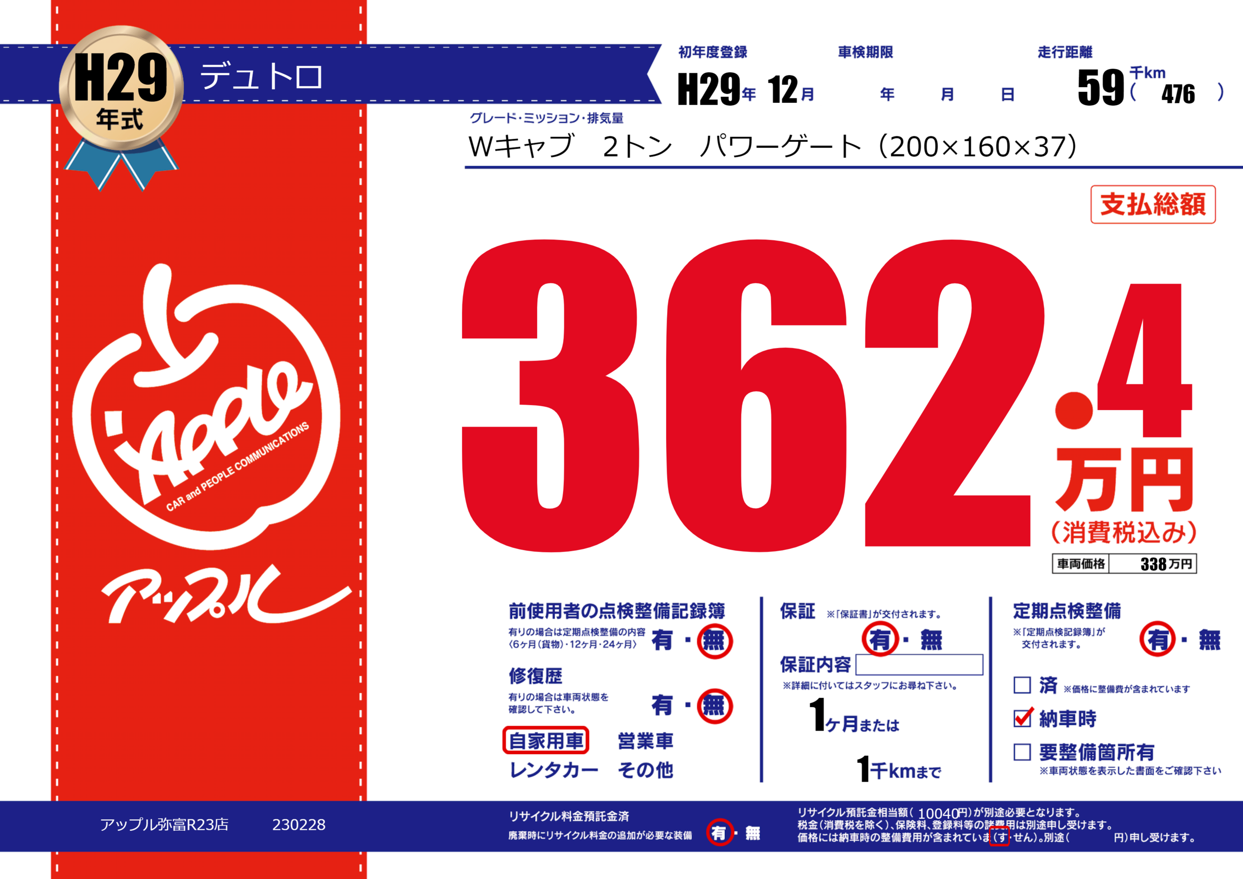 | 定期点検整備 | 定期点検整備あり 納車時あり | ||