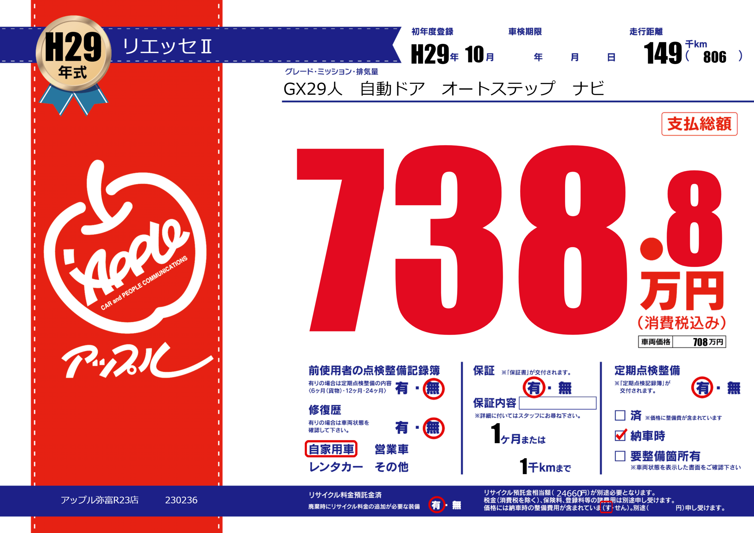 | 車名 | リエッセⅡ | グレード ミッション 排気量 |