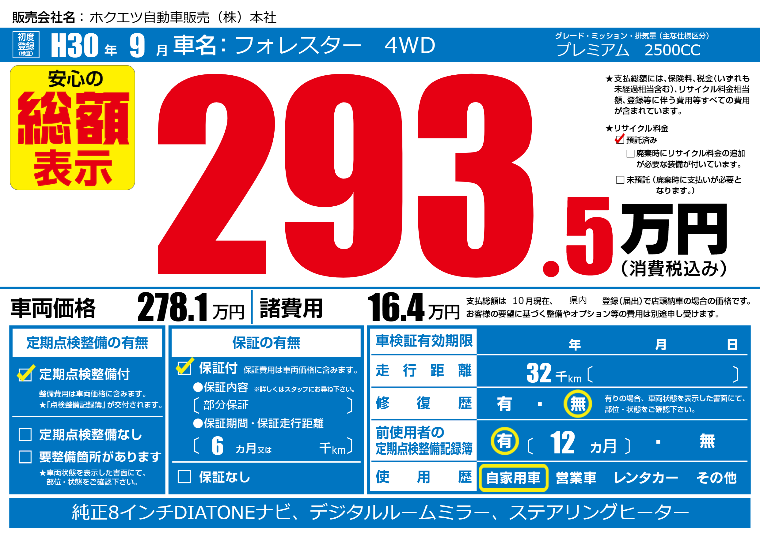 | 車名 | フォレスター 4WD | グレード ミッション 排気量 |