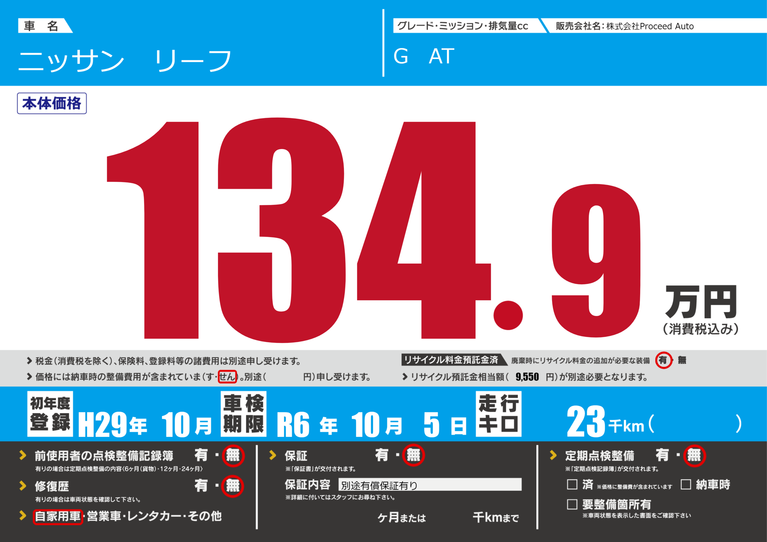 保証なし 保証内容(別途有償保証有り) ---ヶ月または()千kmまで |