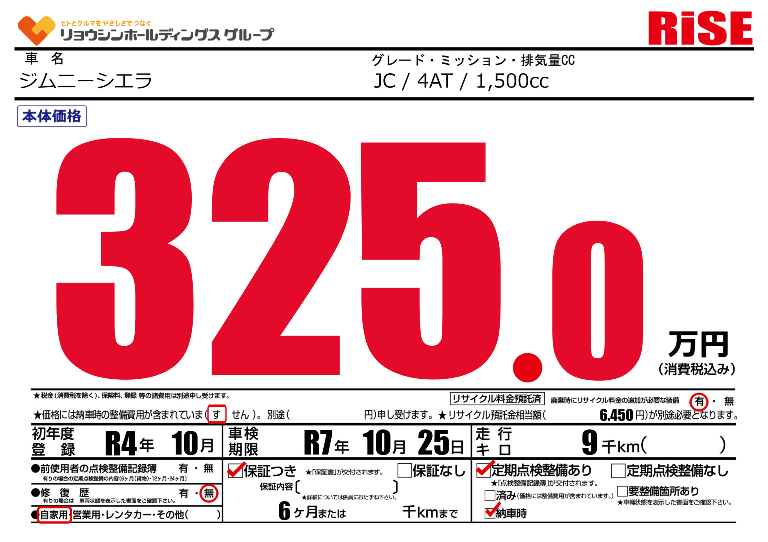 | 車名 | ジムニーシエラ | グレード ミッション 排気量 |