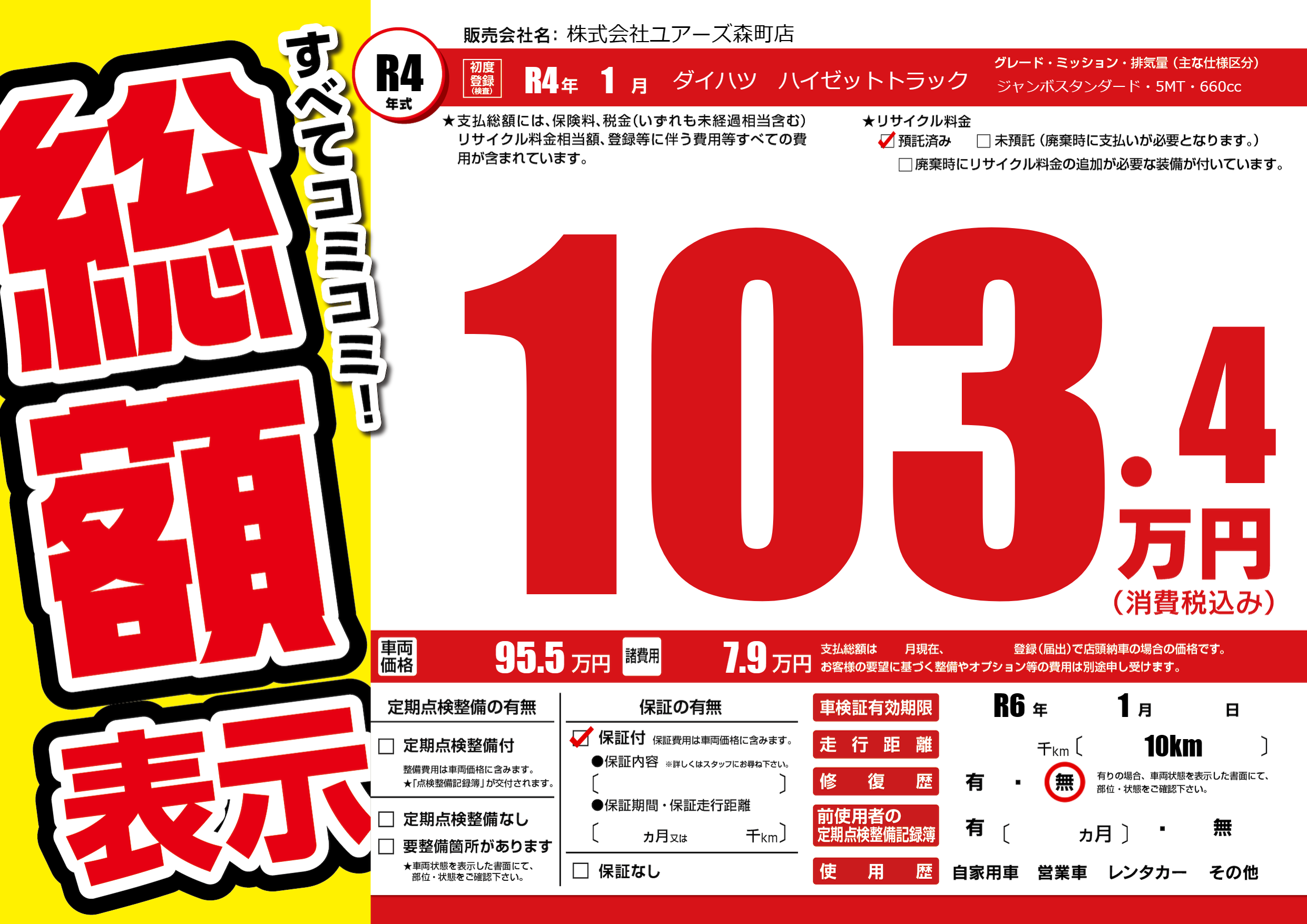 なし | 車検制限 | R6年1月---月 |
