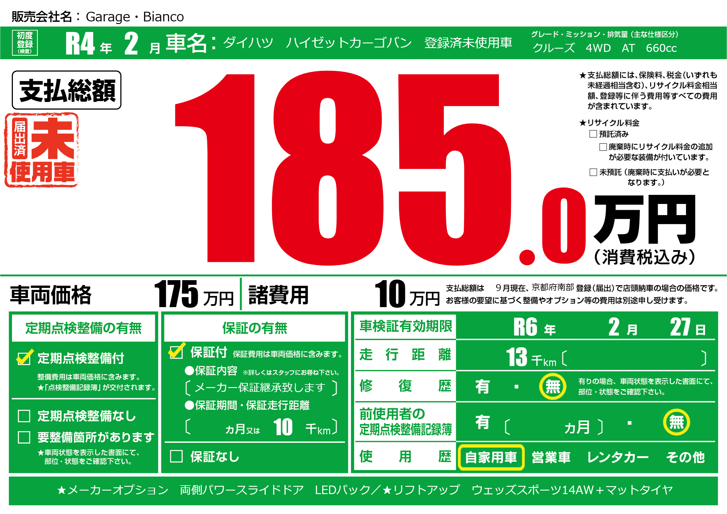 なし | 車検制限 | R6年2月27月 |