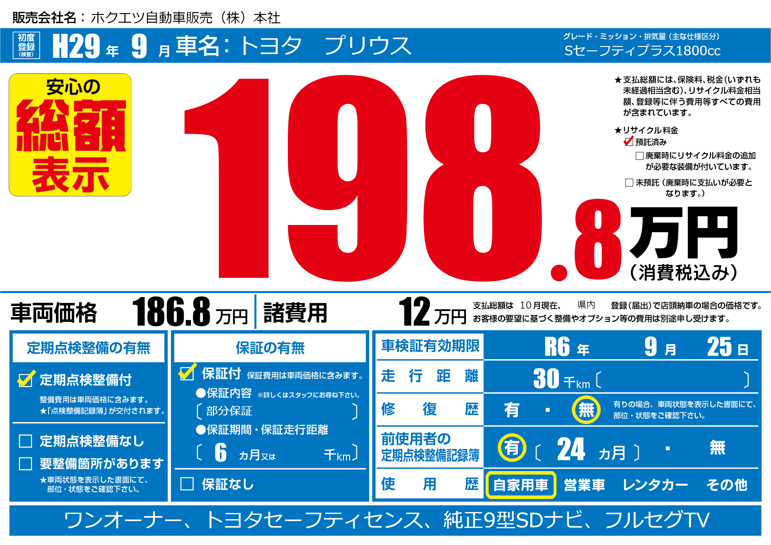 | 車名 | トヨタ プリウス | グレード ミッション 排気量 |