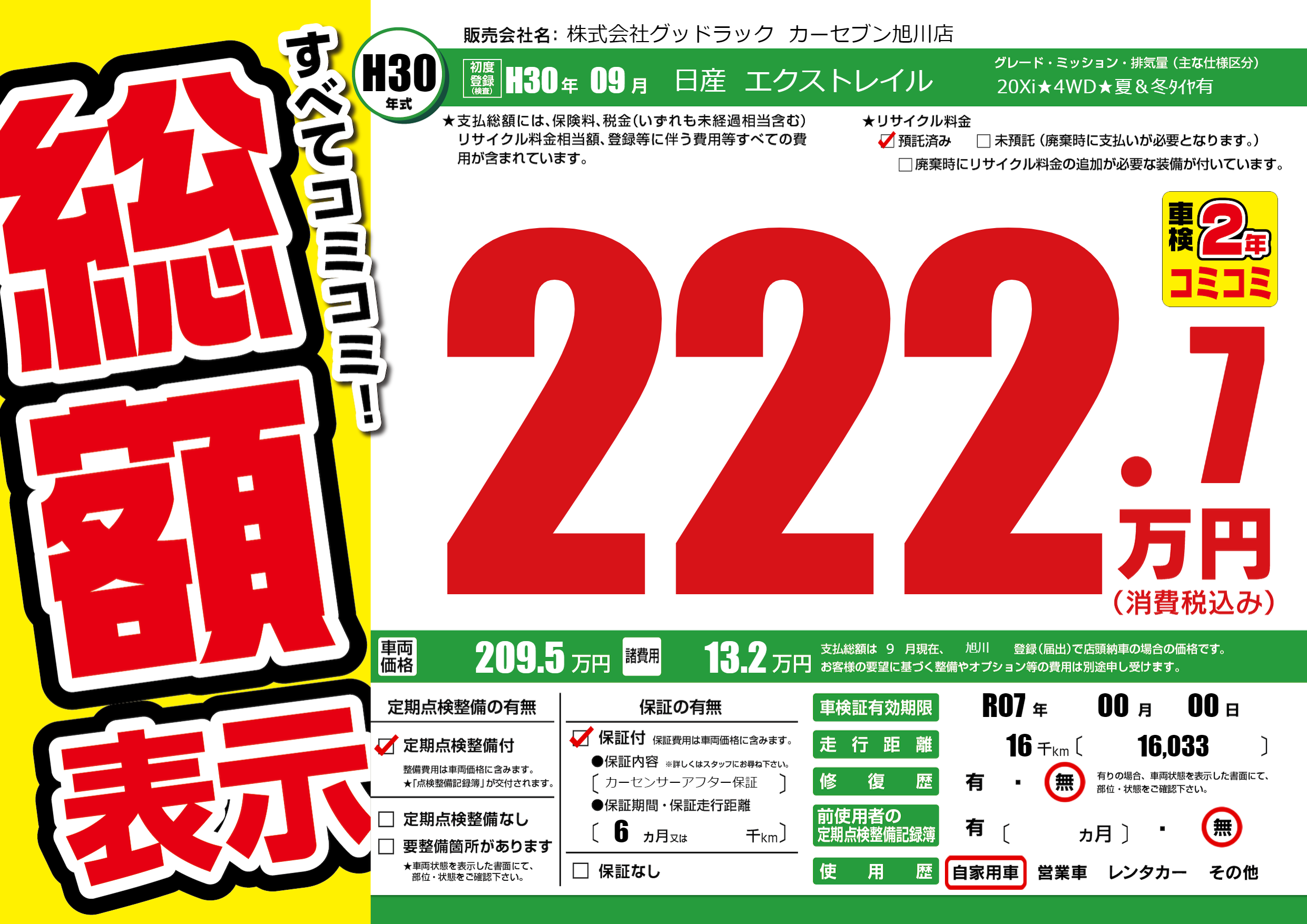 | 車名 | 日産 エクストレイル | グレード ミッション 排気量 |