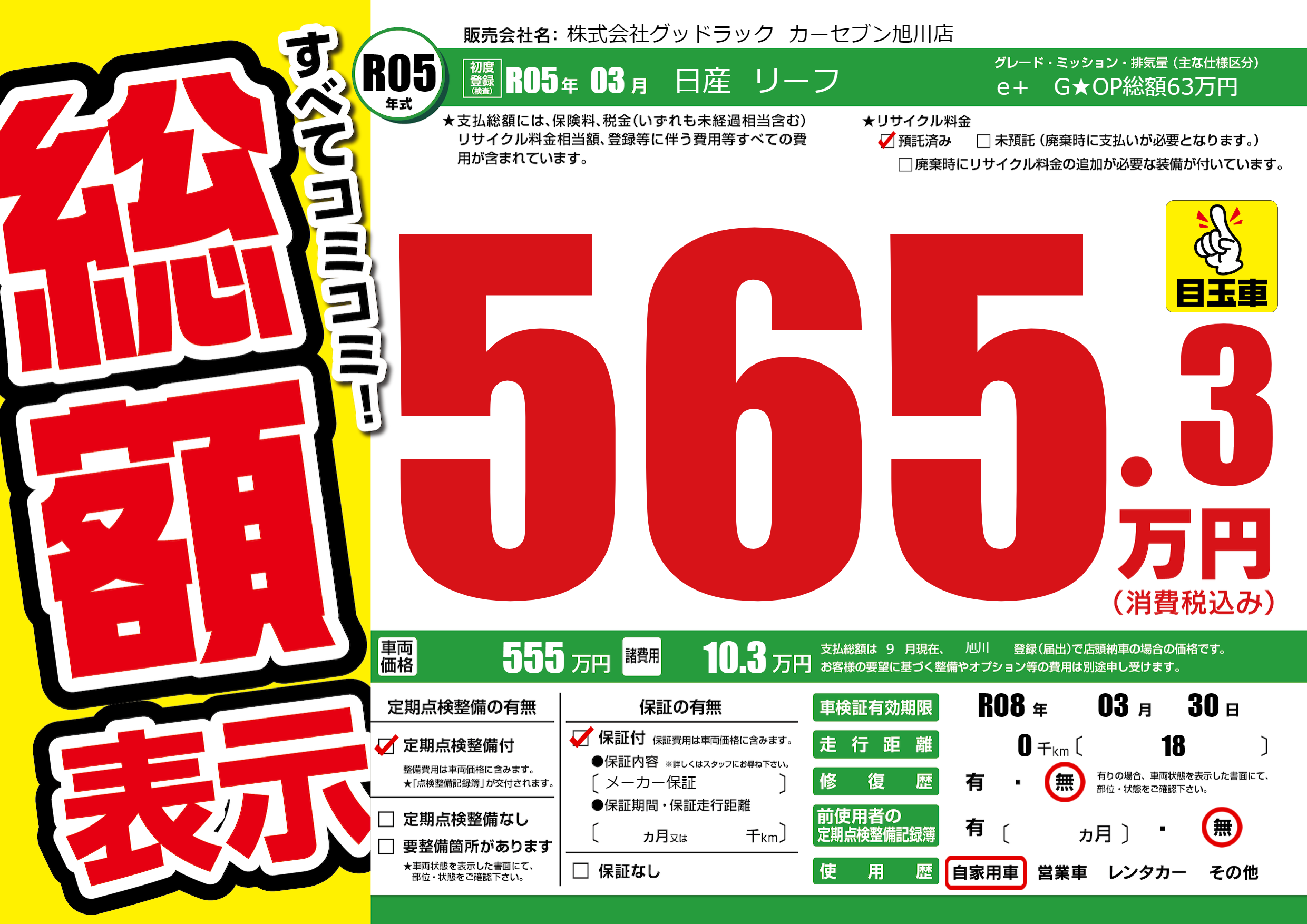 | 走行キロ | - | 初年度登録 | R05年03月 |