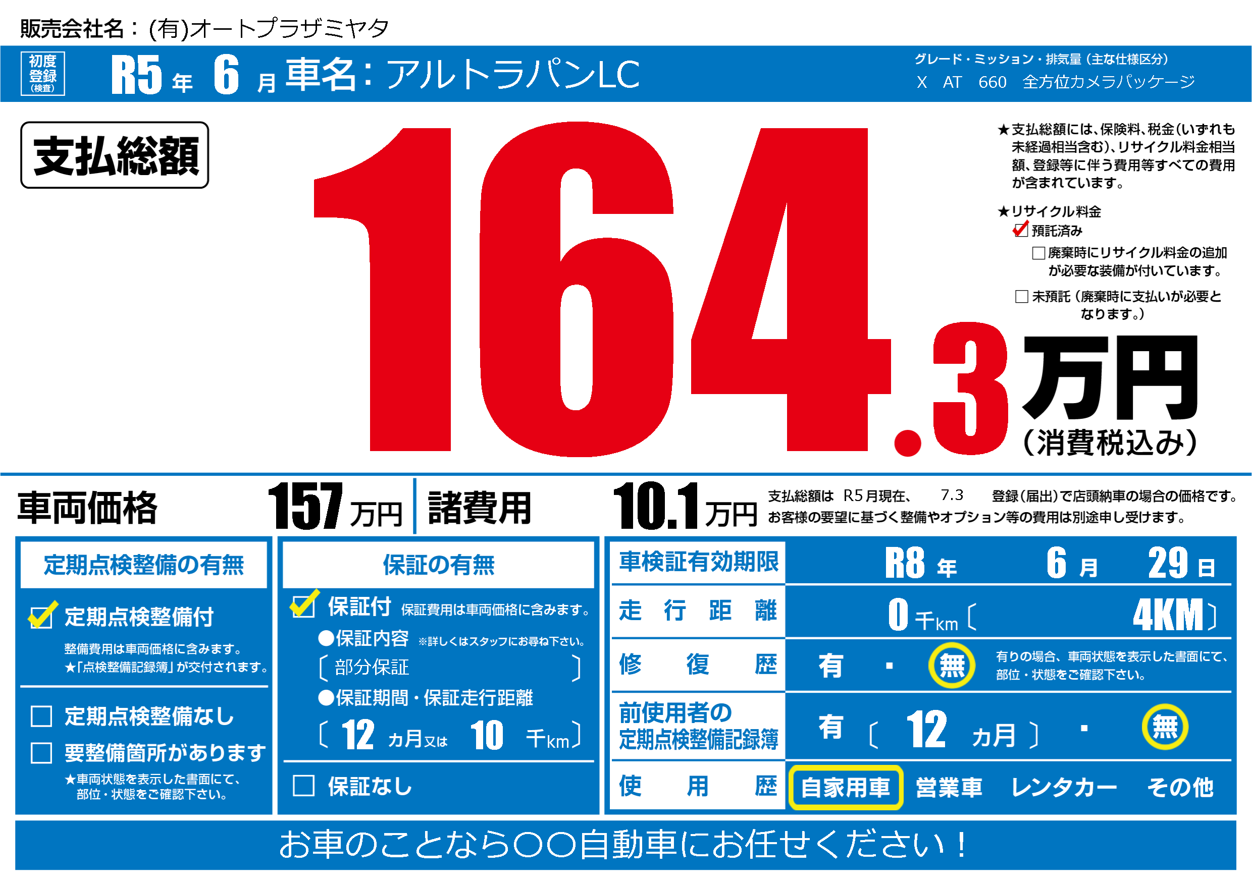 | 走行キロ | - | 初年度登録 | R5年6月 |